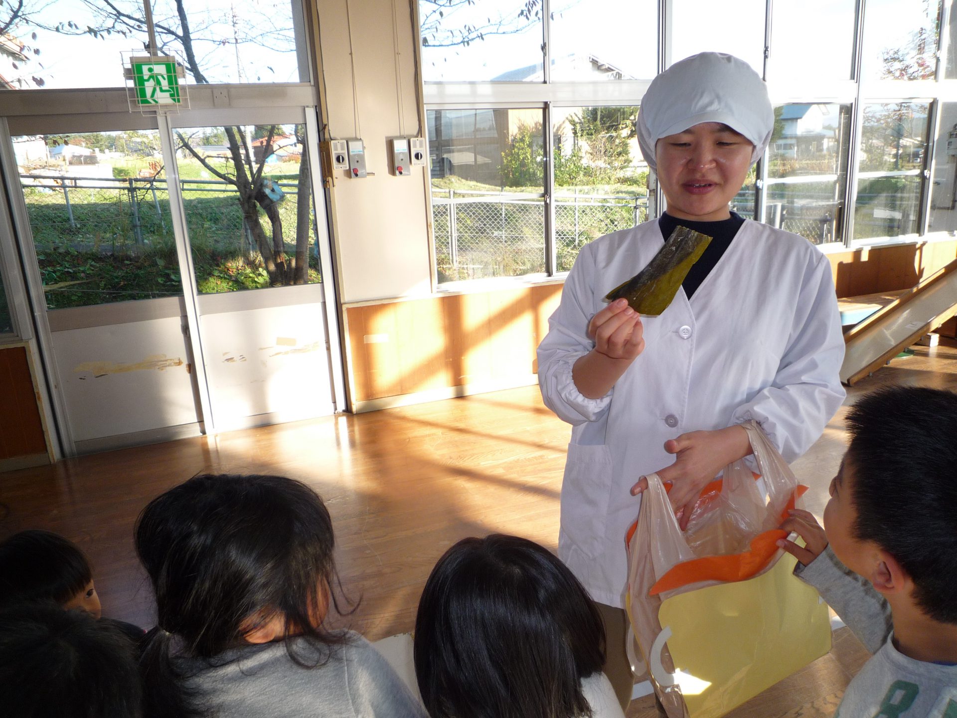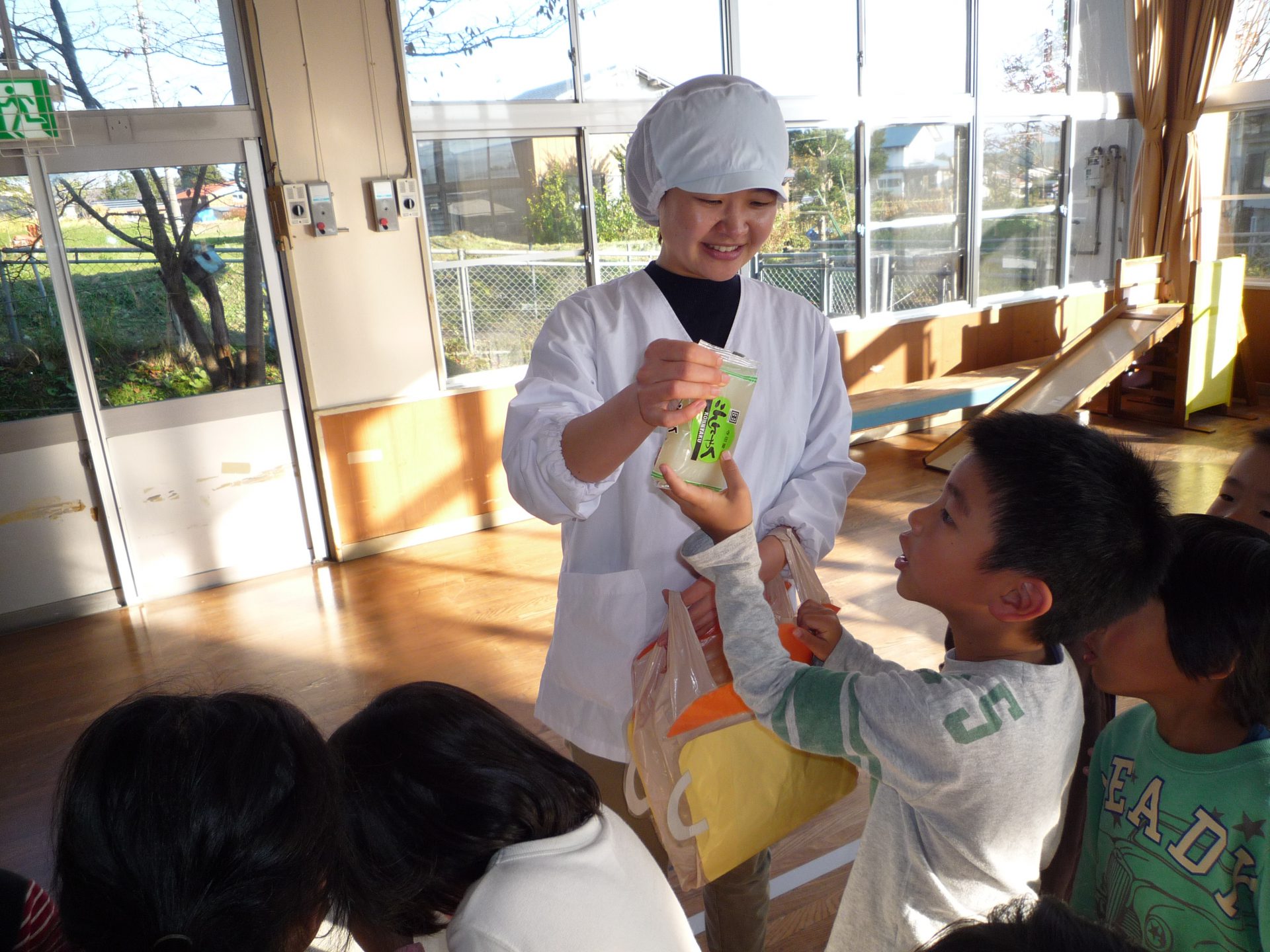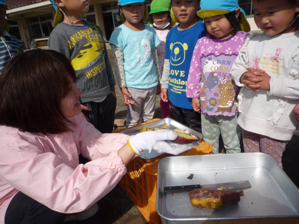 さて、信濃町の保育園では栄養士の先生がおやつの時間に次の日の食材を紹介してくれます。