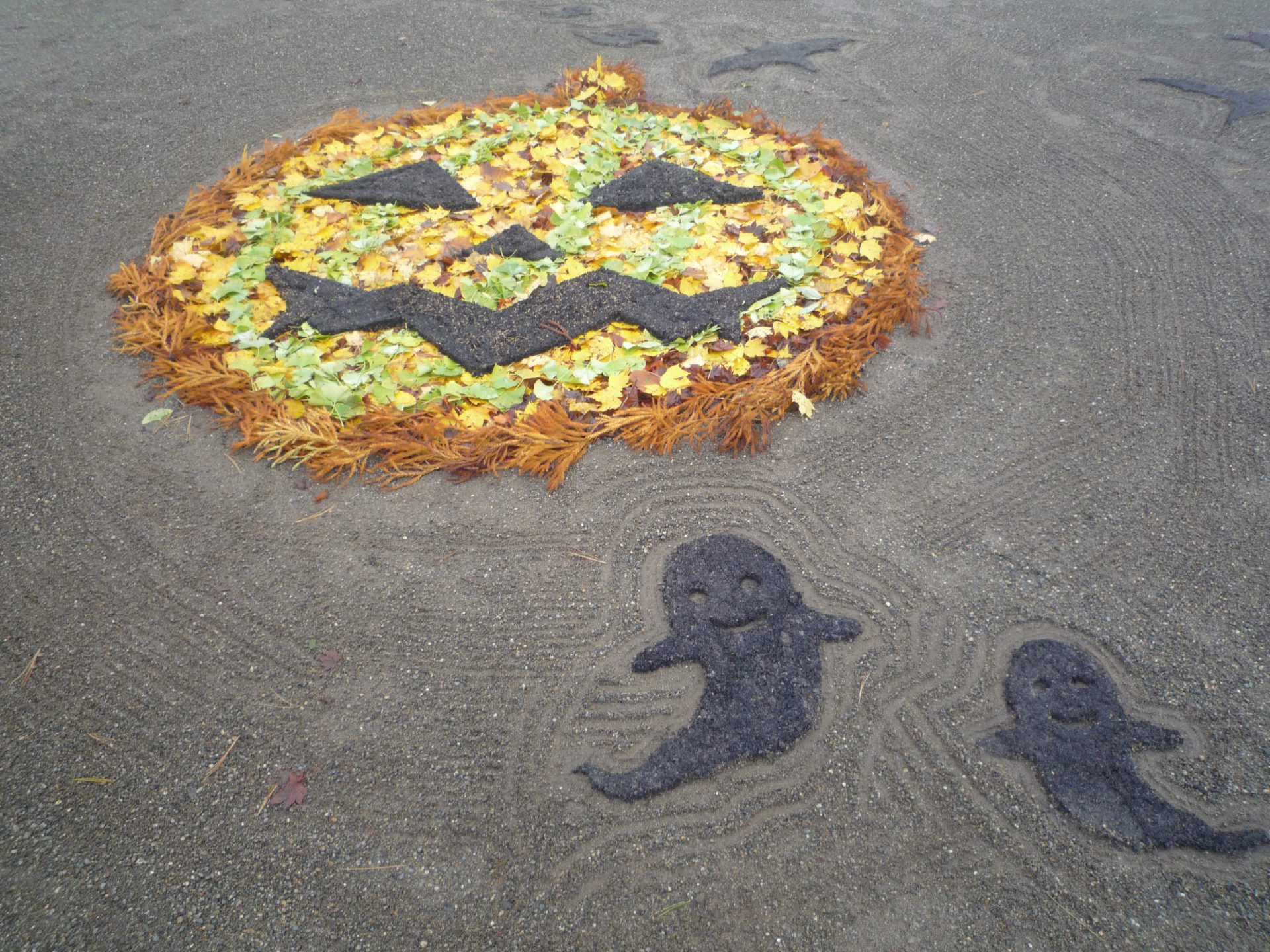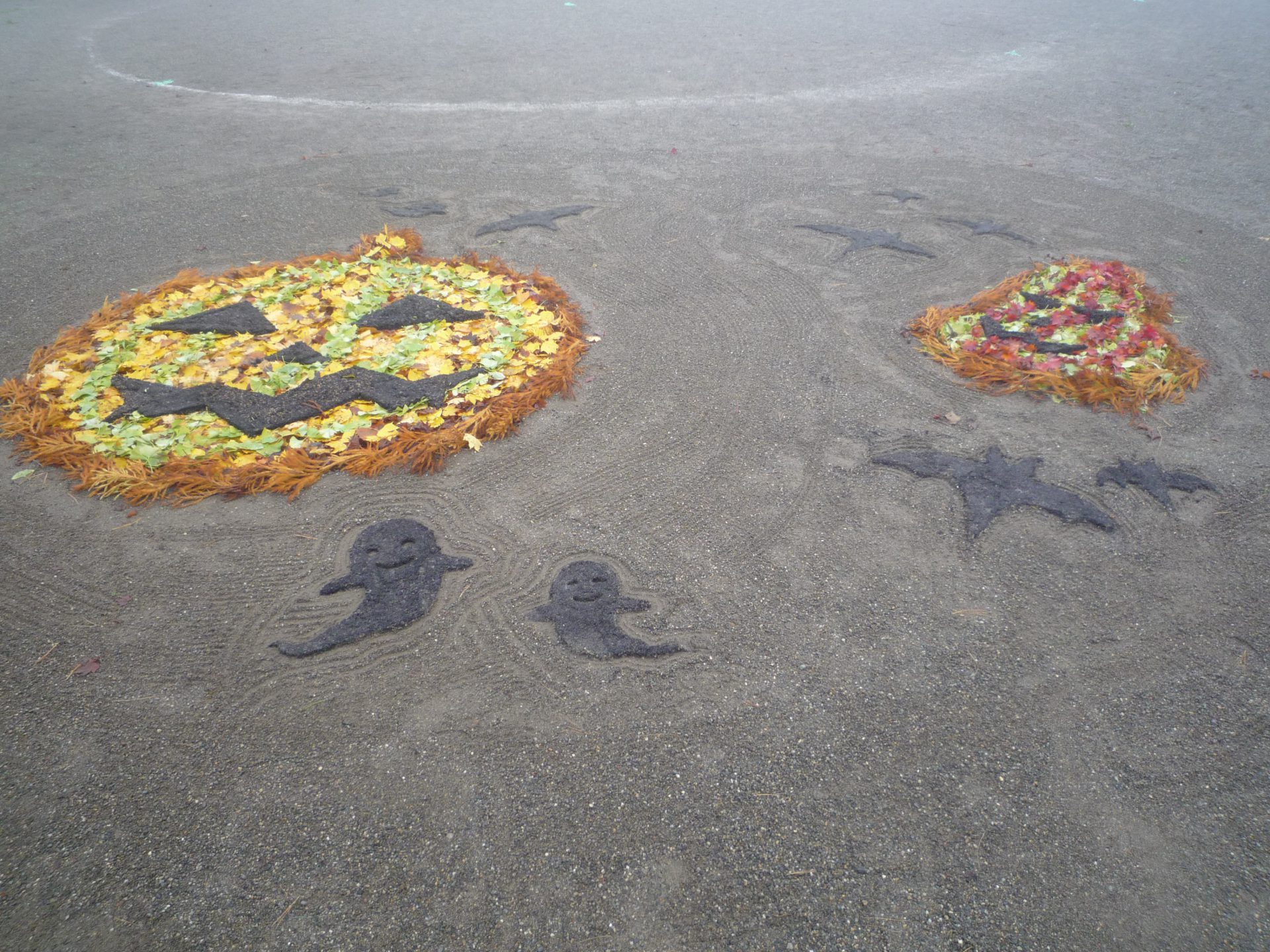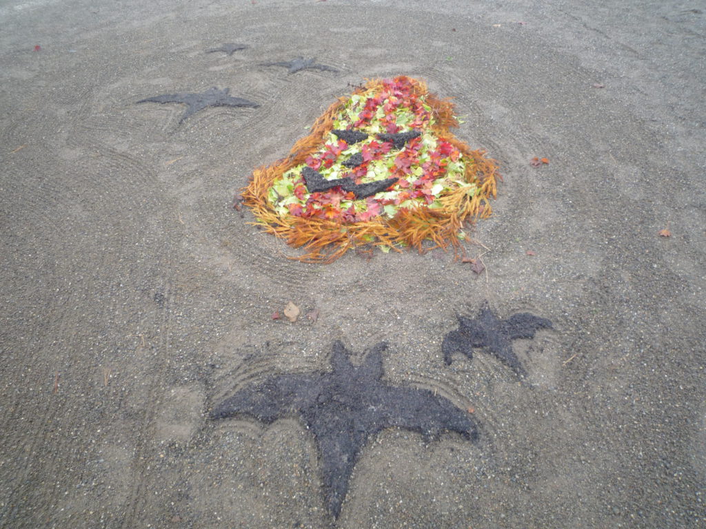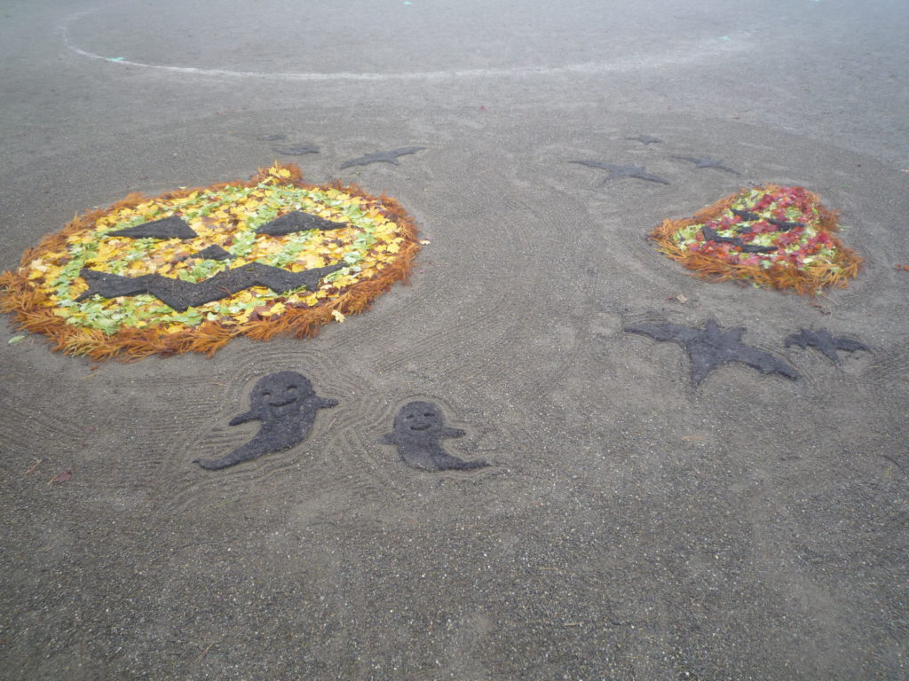 毎年、卒園児のお父さんが保育園の子ども達の為にと落ち葉等を使って絵を作りプレゼントのしてくれるのです。