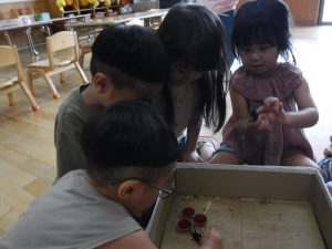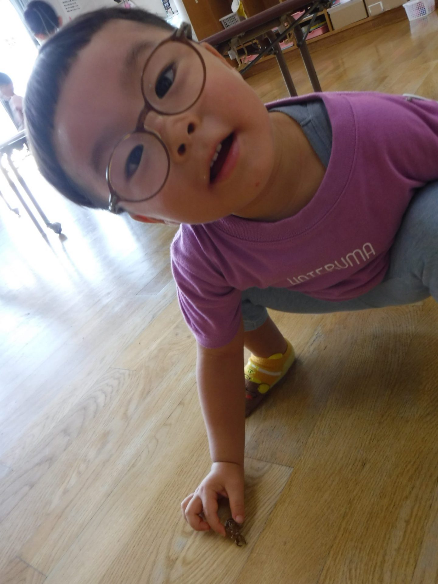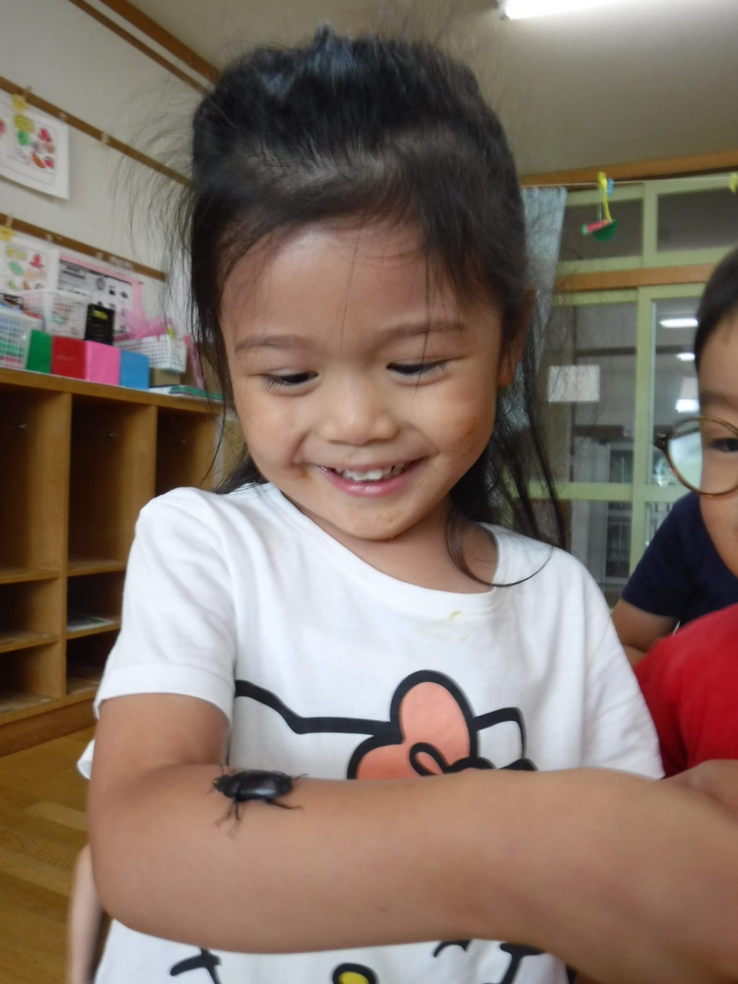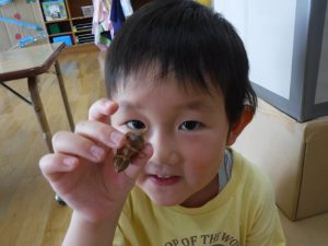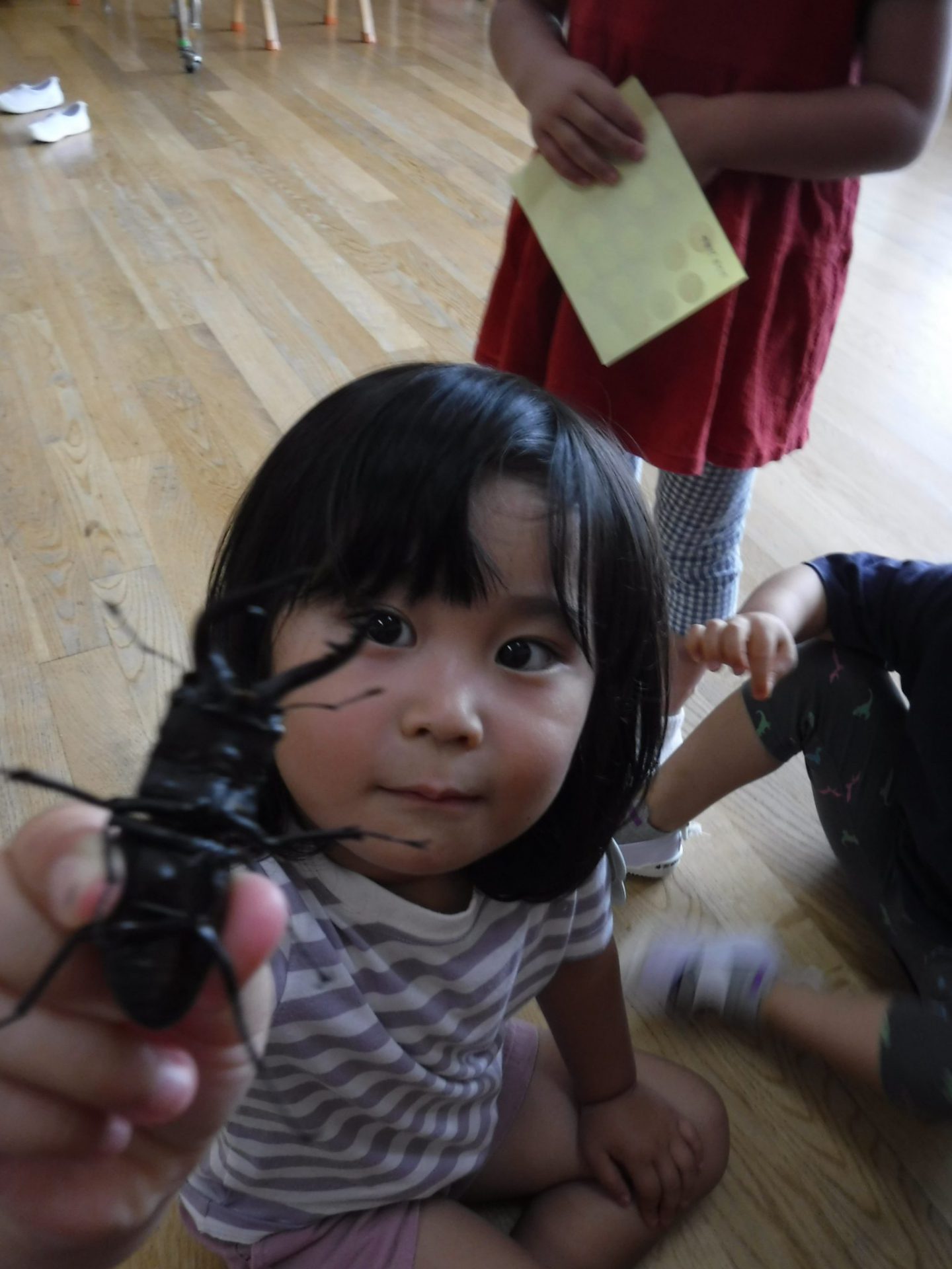 ・カブト虫を観察するだけでなく実際にさわれる環境にした事で、ふれ合い方や持ち方を学んだ子どもたち。毎日ふれ合う事で、友だち同士でまだ持てない子に持ち方を教えたり、図鑑を一緒に調べたりと子ども同士の関わりも増えました。