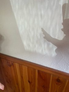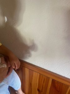 何かを見つけて大喜び。ふと見ると、普段はなんでもない普通の壁が・・・
