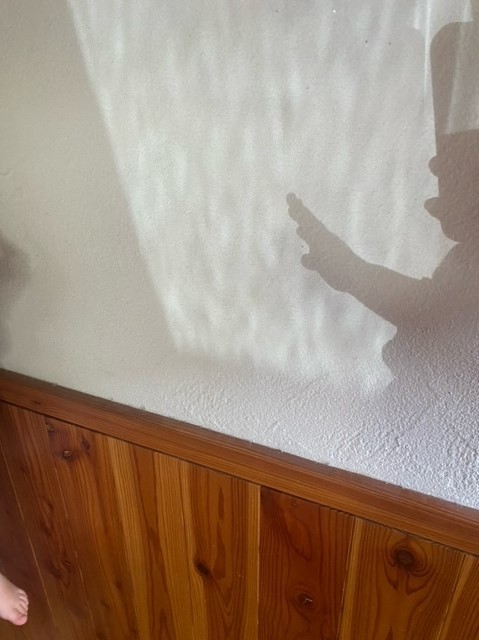 ・毎日通る場所がいつもと違うことに気が付いた1歳児。手をかざしても、触っても止まらない陽炎のゆらゆらにびっくり。1歳児ながらに不思議さを感じ感動している様子でした。手を出したら小さな手の影が写ることにも気が付きました。