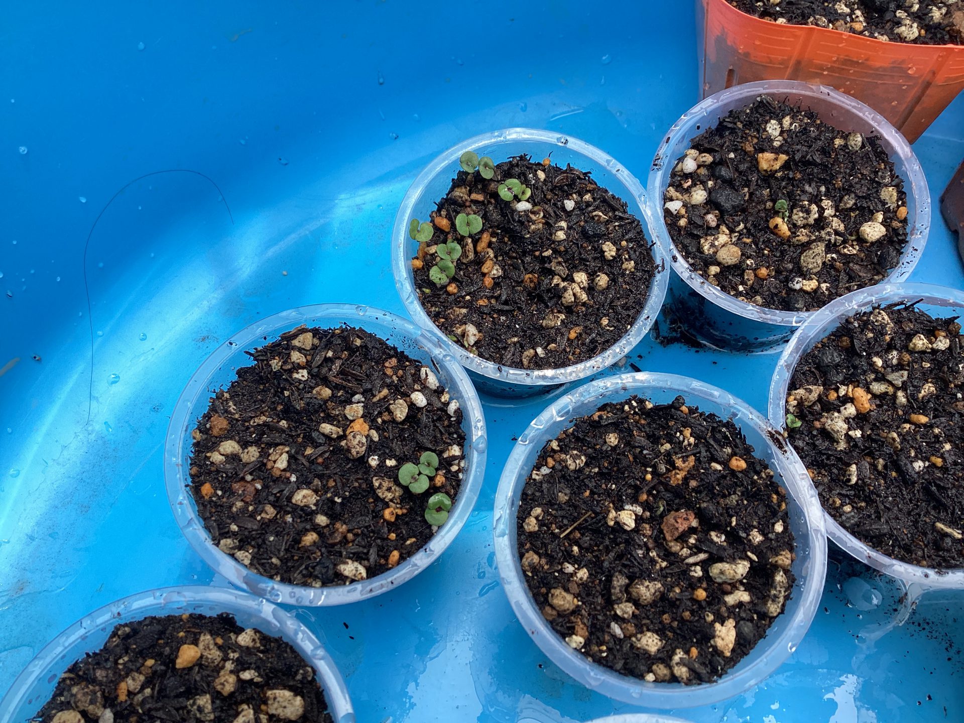 「赤しそのあかちゃんにお水をあげなくちゃ!」と登園してすぐ、種を植えたカップのところにいく姿がありました。 なかなか芽が出なくて毎日「がんばれ〜!!」とみんなで応援し続けて・・・ ついに小さな芽がピョコッ!と顔を出しました。