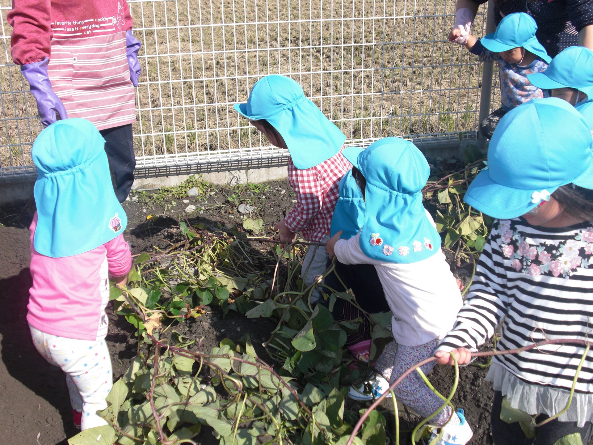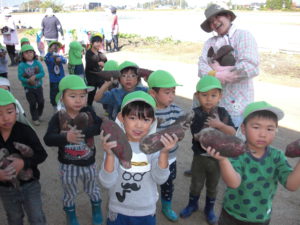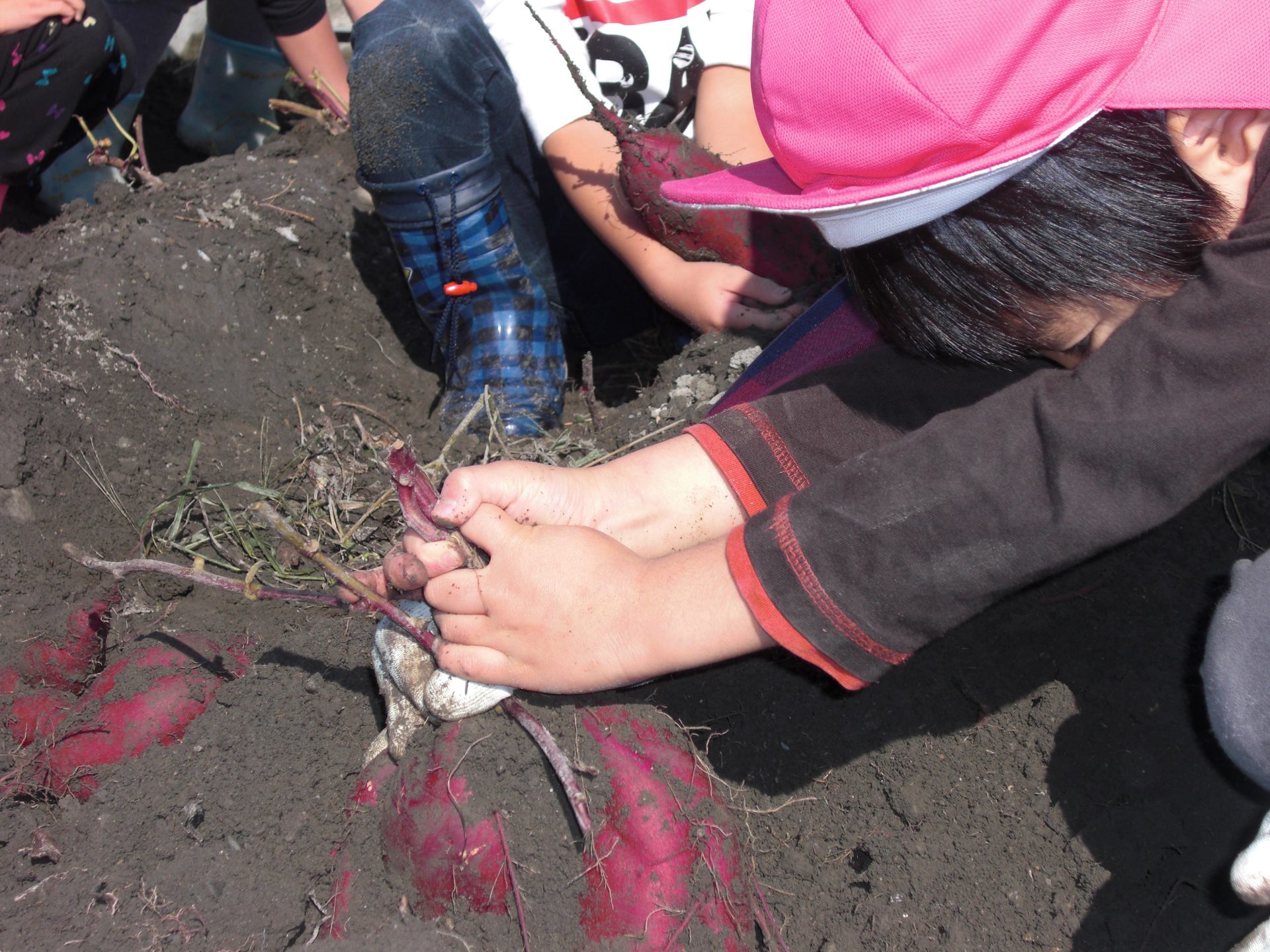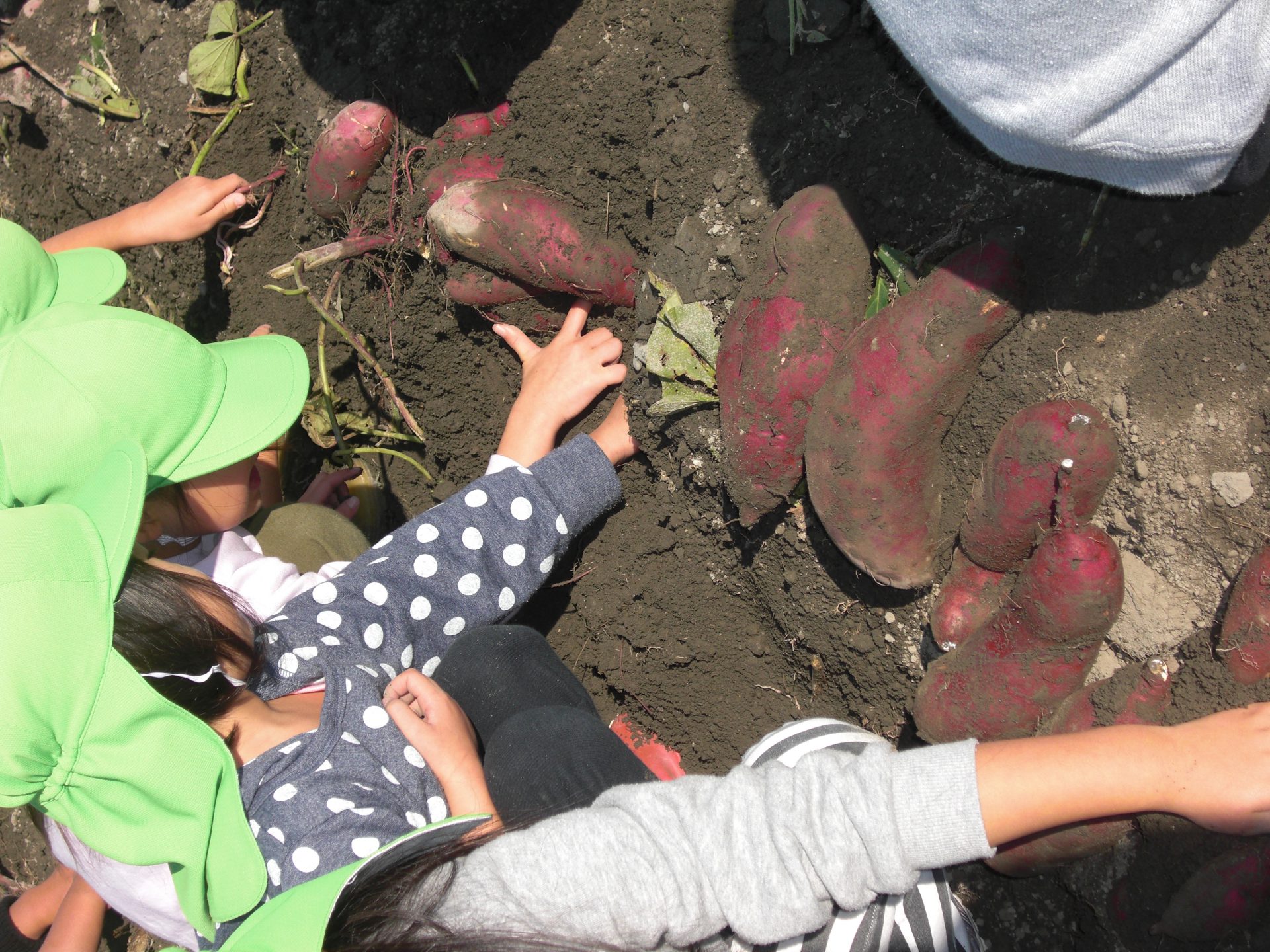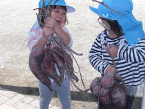 「わ!大きなおいもが埋まってる。」「たくさんくっついてるね。」