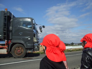 実際はトラックなのですが、子ども達にとっては仁王様の方が大きく見えていました。