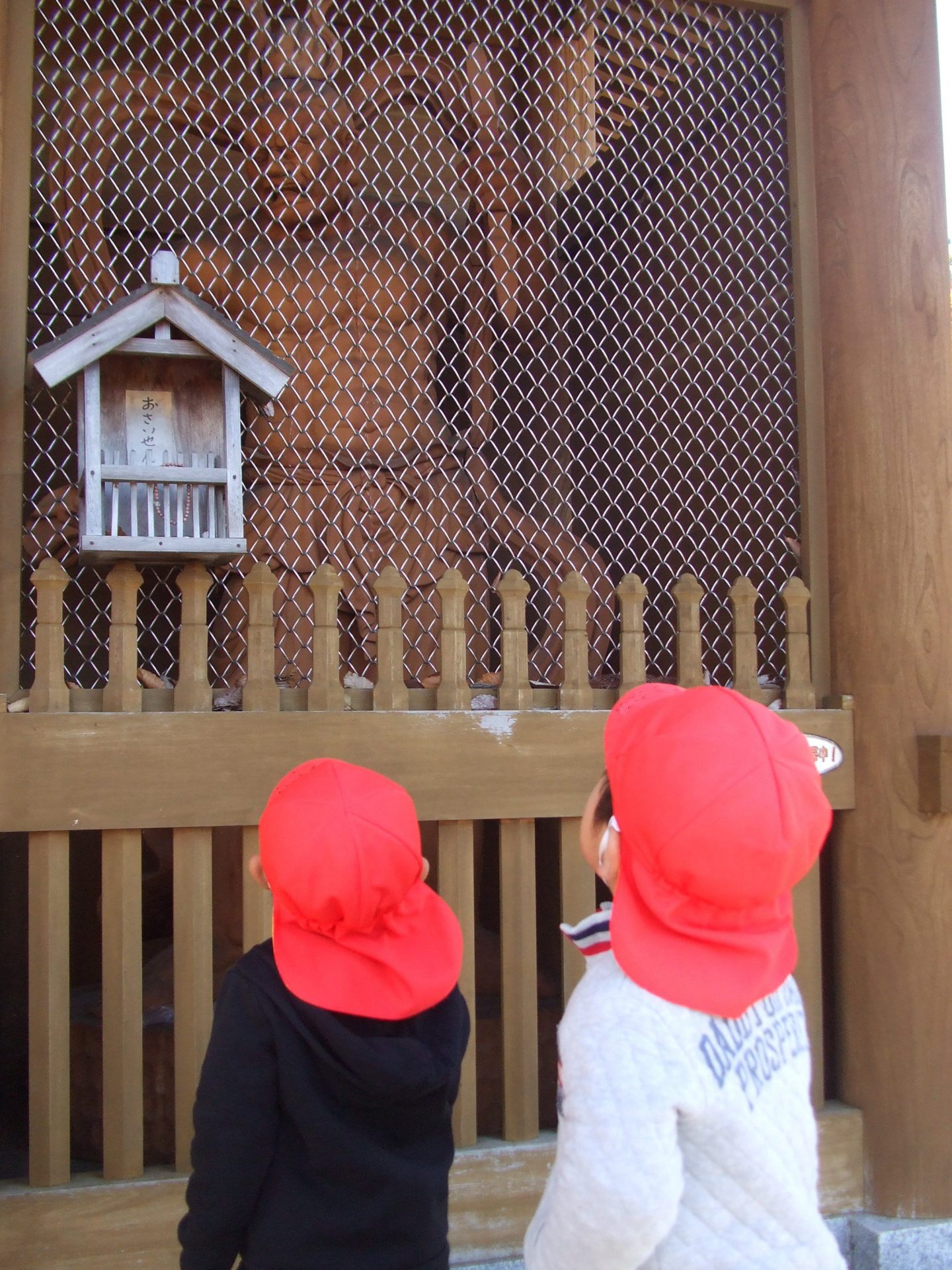 仁王像の迫力に圧倒されながらも「おおきいね!」「すごいね!」とお友達と話しながら仁王様に釘づけの子ども達でした。