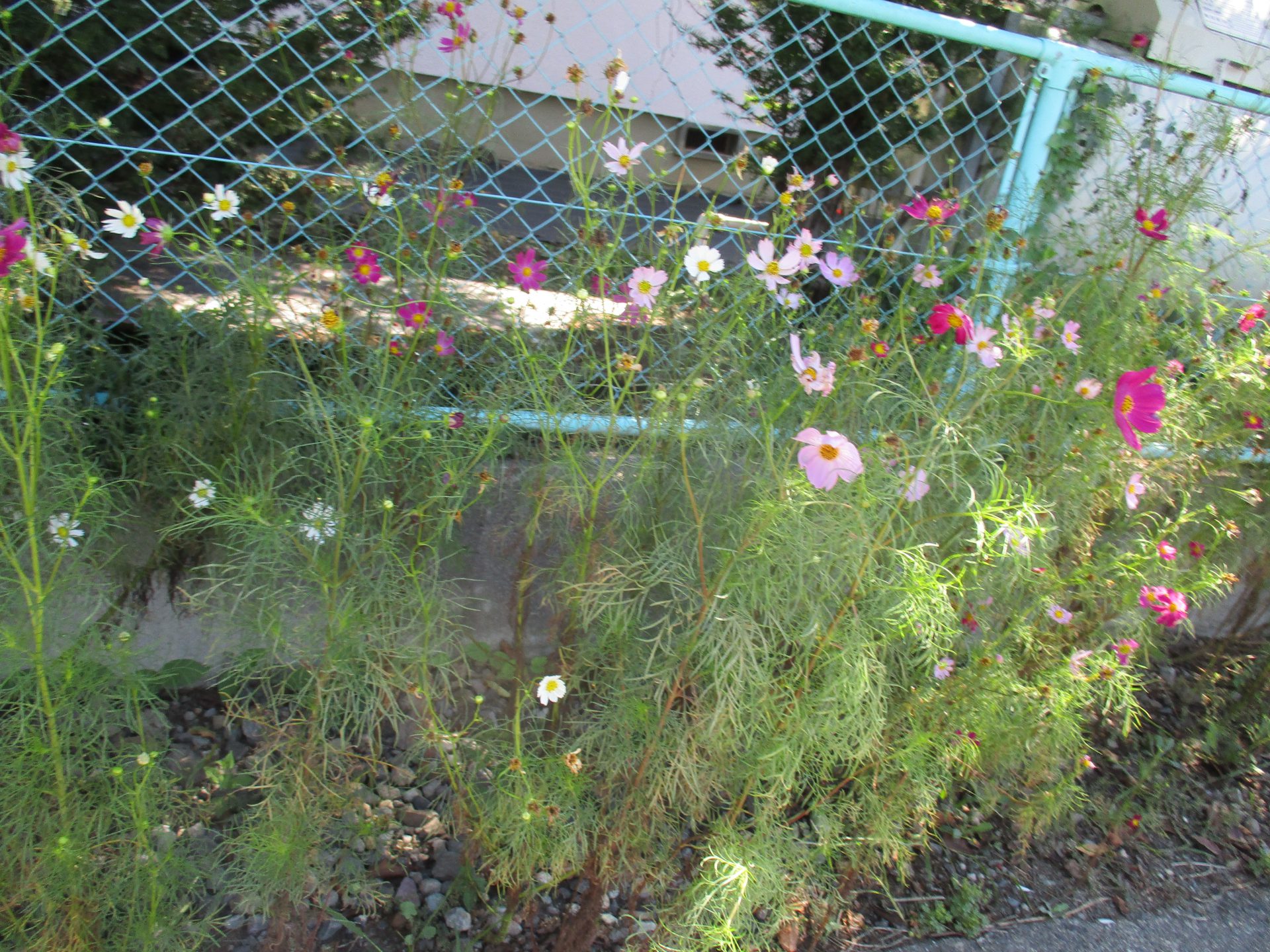 保育園の周りにはコスモスが満開です。きれいだね。