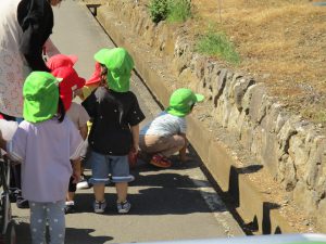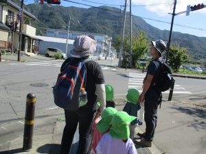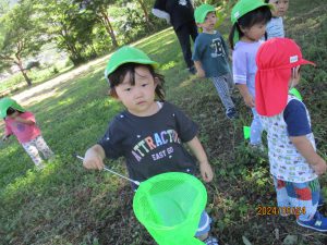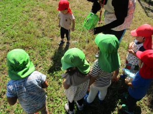 ・虫を嫌がる子が増えているが、自然と触れあう中で虫に触れなくても怖がらずに興味を持って観察して欲しいという願いを持って散歩に出かけた。
