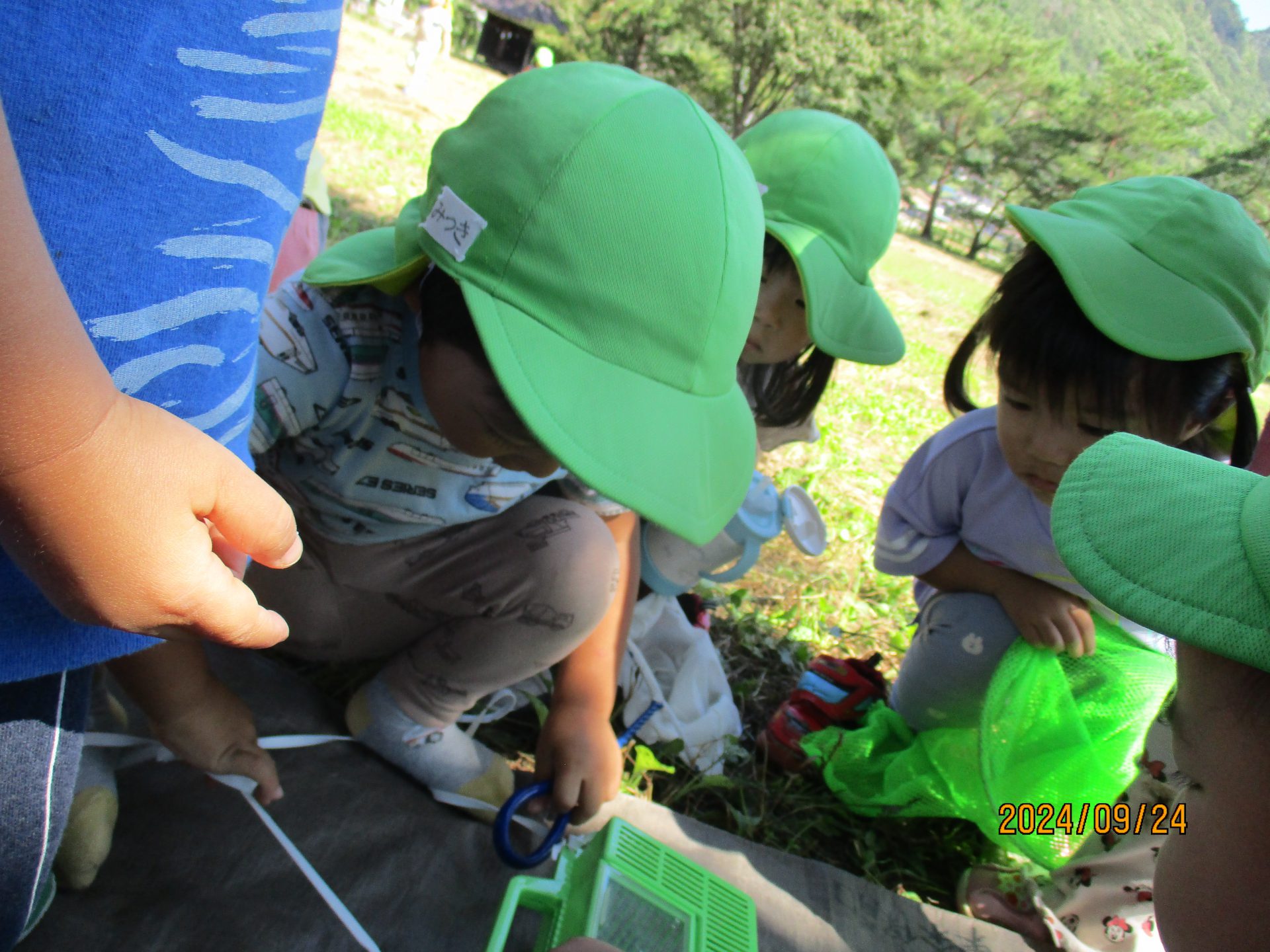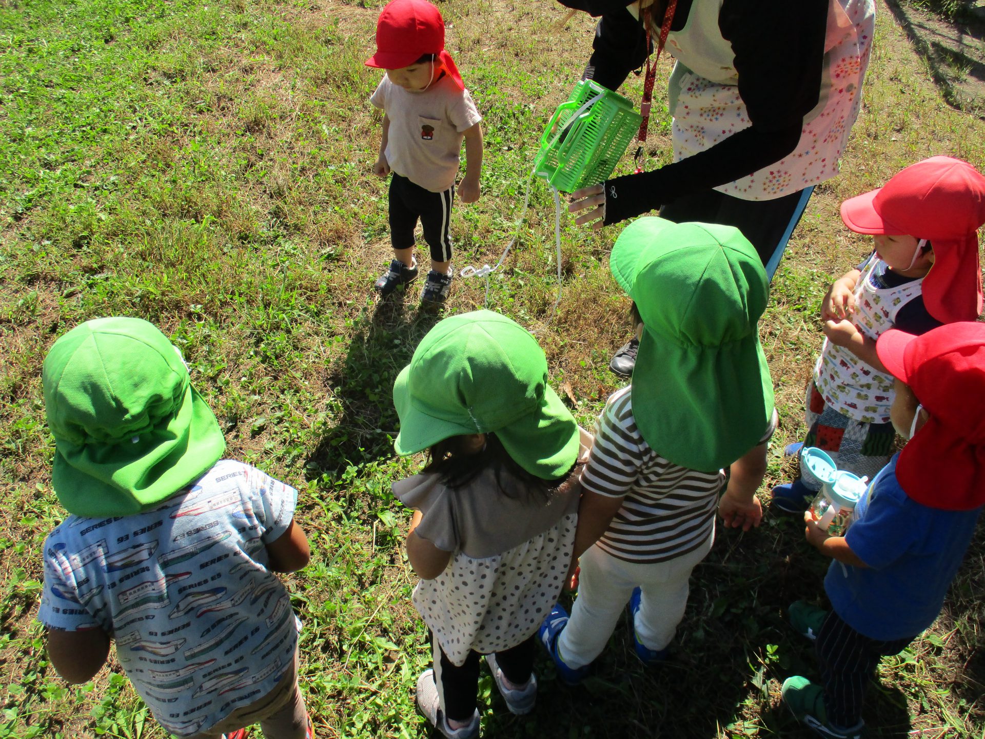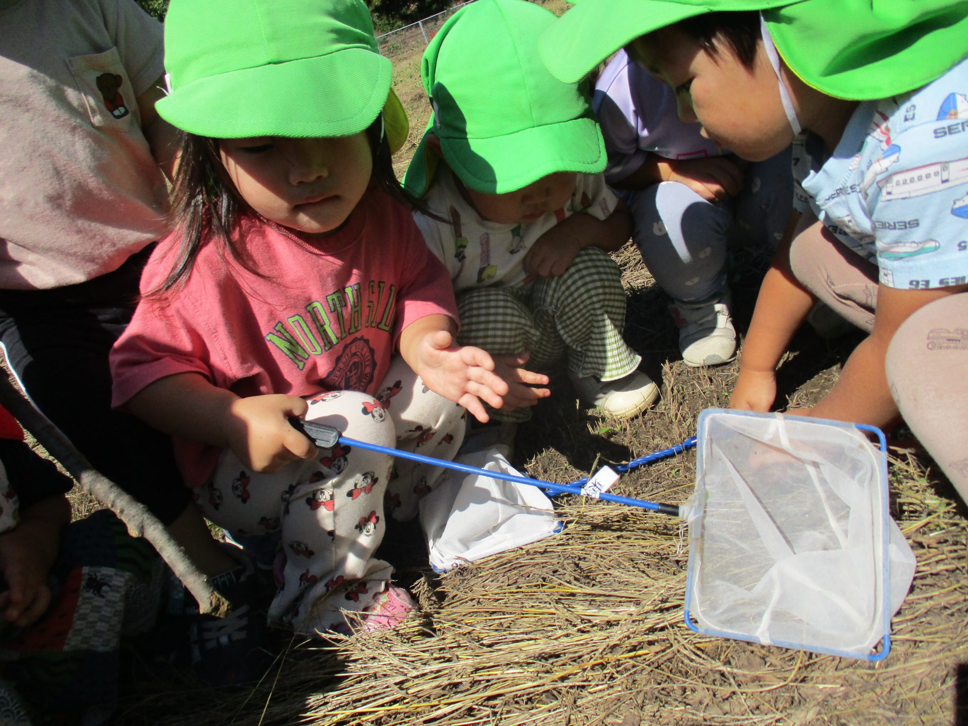 「やった~!捕まえたよ!」「先生!こっちもピョ~ンしてる」
