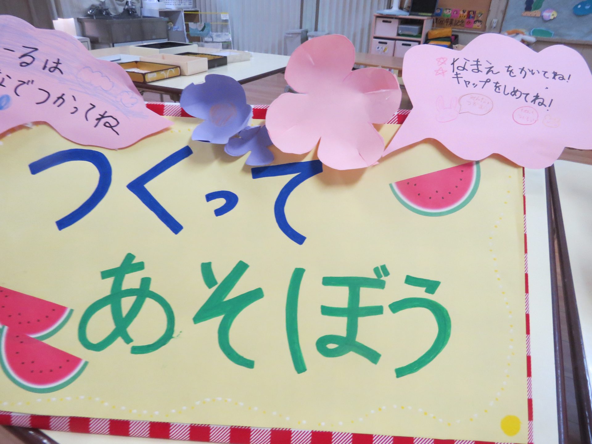 夏休み明け緊張した気持ちを持っている子もいるため、お家の方と一緒にいつもと違う夕方の幼稚園を楽しむ。