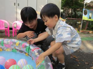 ヨーヨー釣りなど、小学生、中学生もお手伝いをしてくれました。
