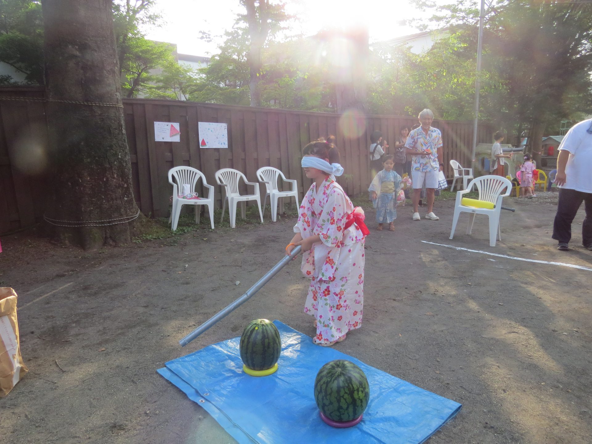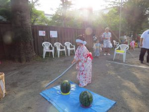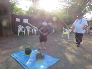 スイカ割りもして卒園生も遊びに来てくれました。