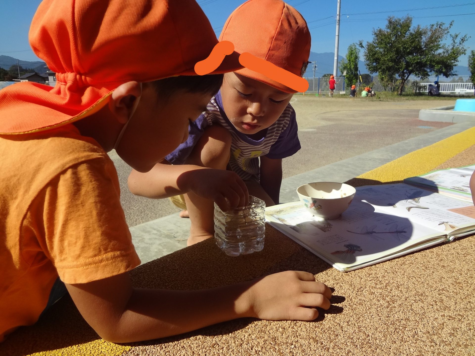 友だちと一緒に考えたり、図鑑を使ったりしながら発見や考えをめぐらして観察する姿その貴重な瞬間を大切にして生き物とのかかわりや命を大切にする気持ちが大きくなってほしいなと感じたエピソードでした。