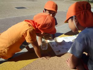 園庭にトンボがたくさん飛んでくるとみんなこぞって虫取り網や手で摑まえる姿を多く見るようになります。