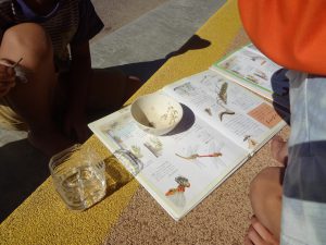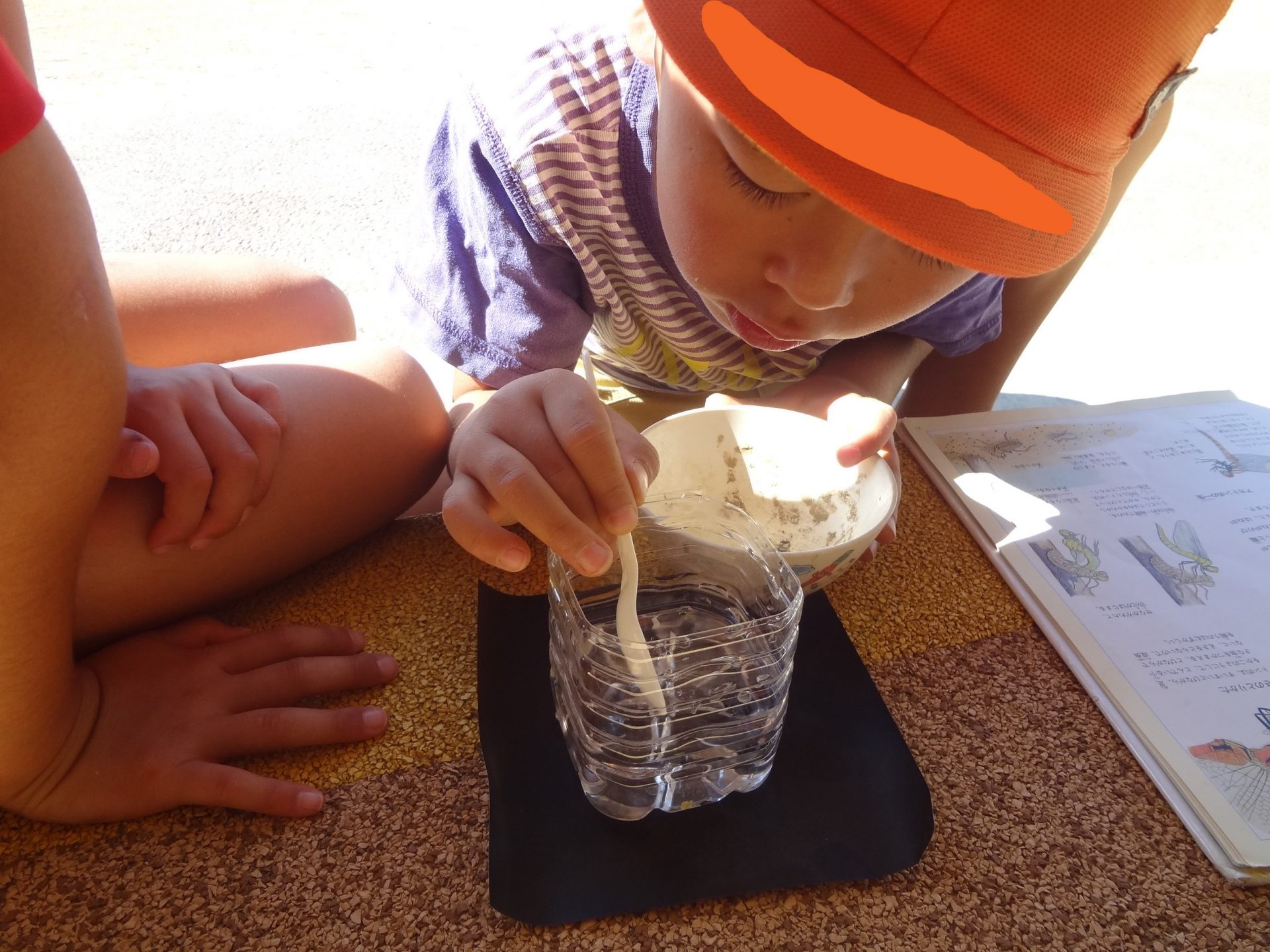 図鑑を見ながら卵の採取の方法、オス、メスの違いを発見した子どもたち!大発見の連続でした。