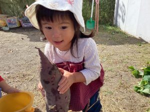 大きなサツマイモを持ってみたくなり挑戦していました。