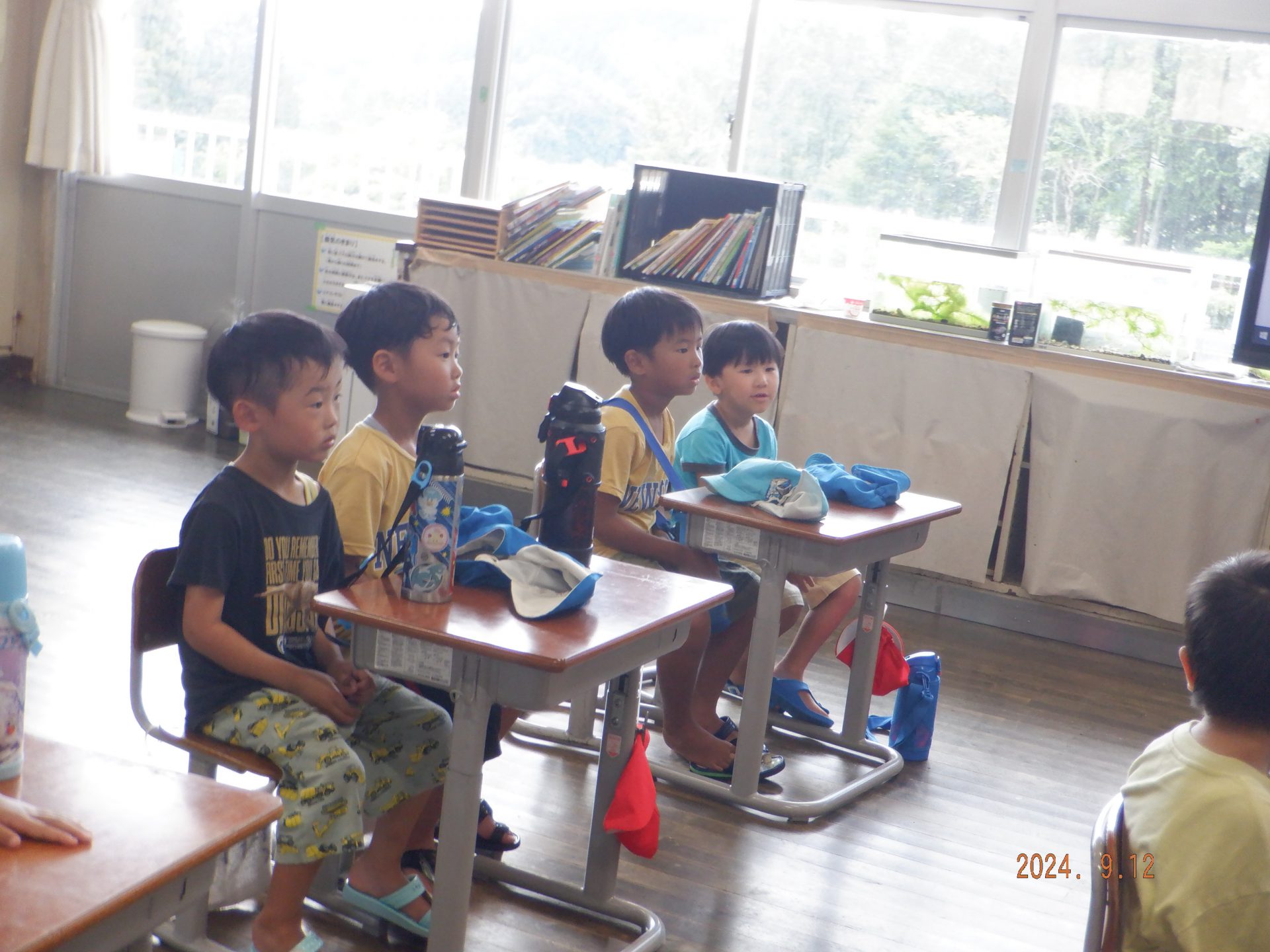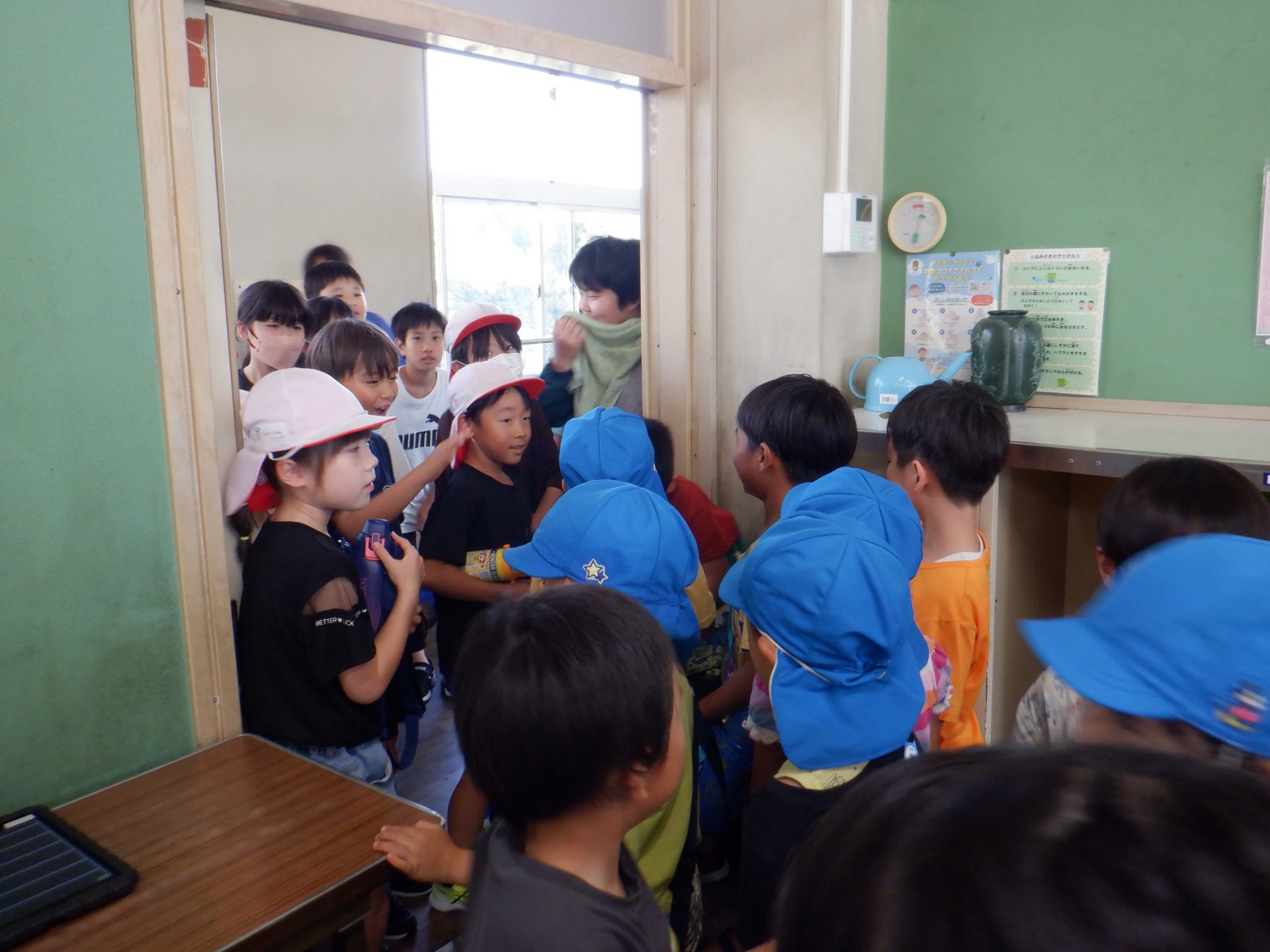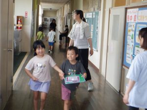 三穂小学校の1年生が小学校に遊びに来てください。と招待してくれたので、さっそく年長さんが出かけていきました。