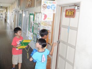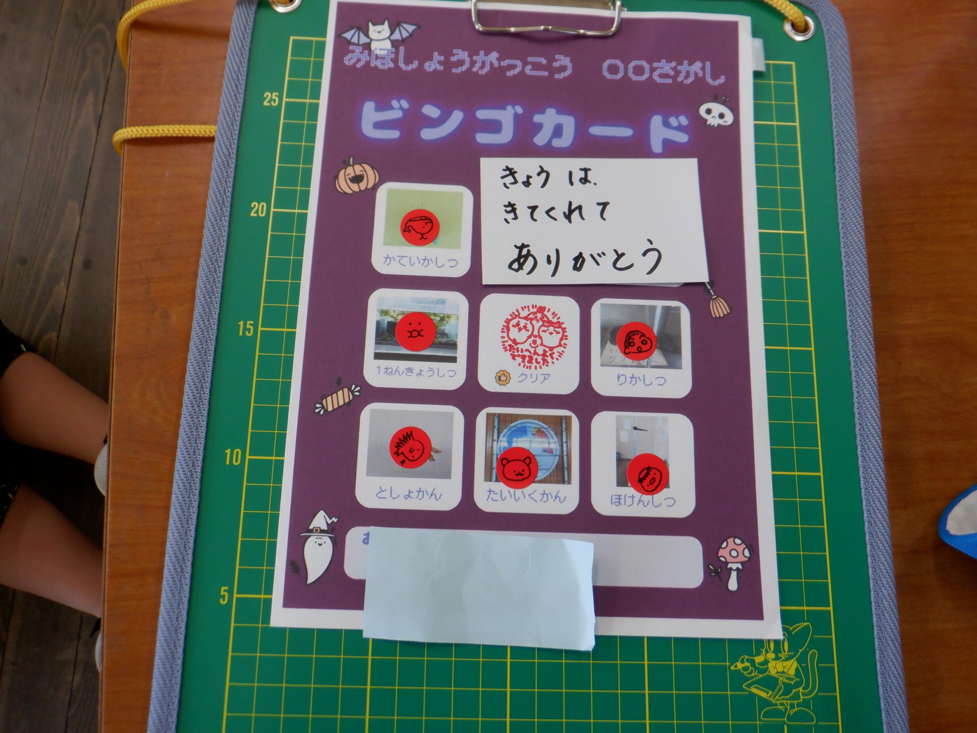 ビンゴカードに書いてある教室に行って写真に写っているものを探します。