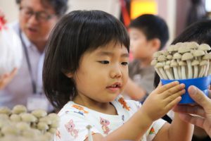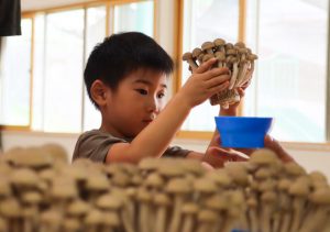 きのこ収穫体験を通して、地元の有名な農産物について知ってほしい。
