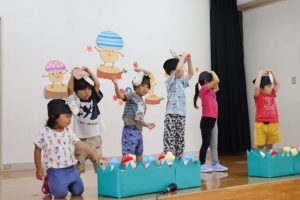 きのこの収穫体験をさせていただいたお礼に子ども達はきのこの歌とリズムを披露しました。