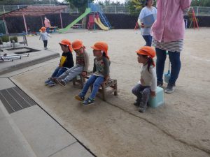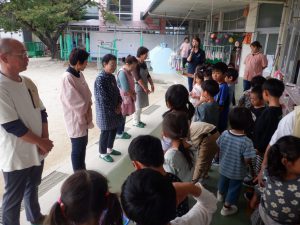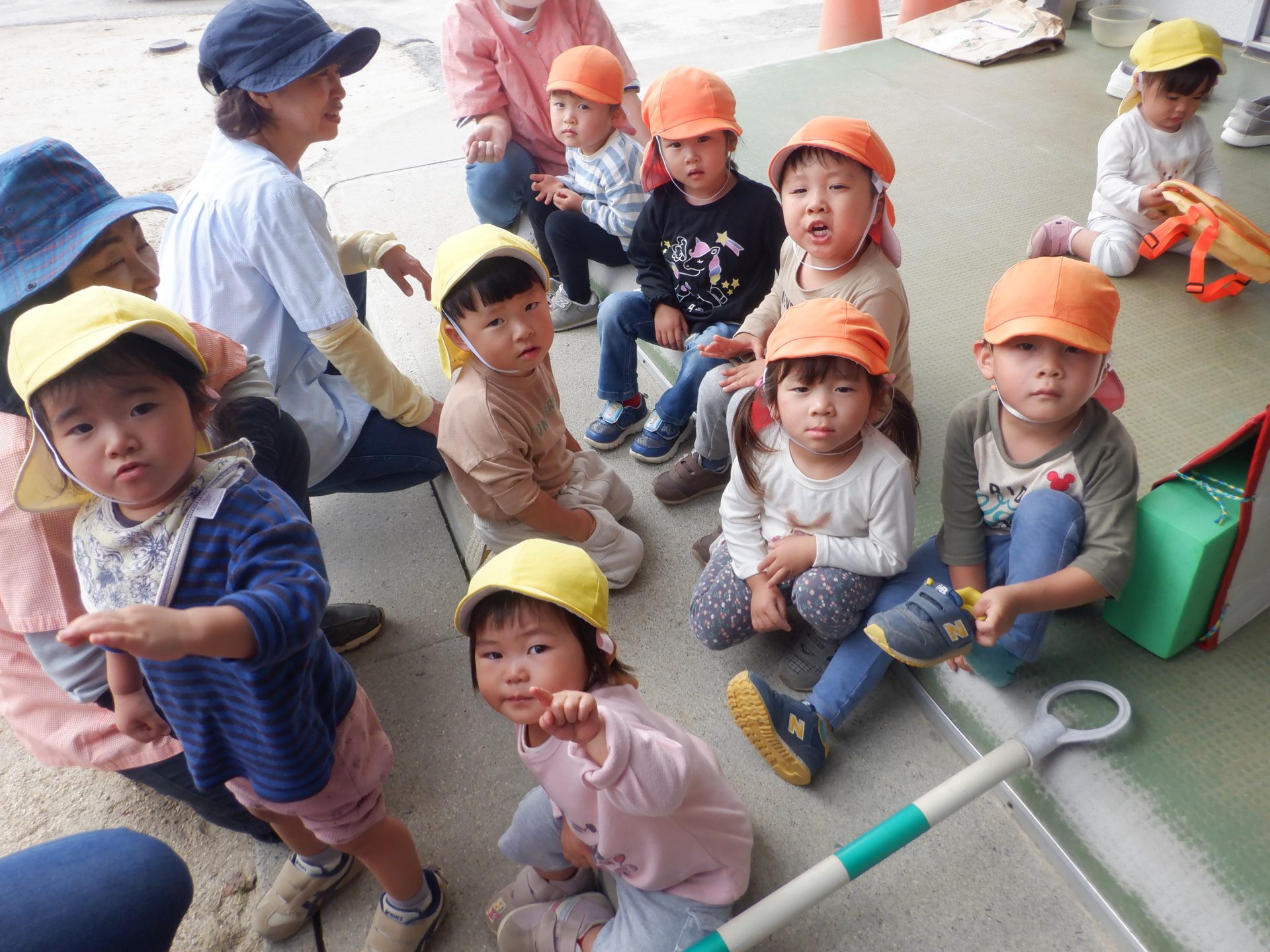 年少さん、未満児さんも「何するの~?」と集まってきました。