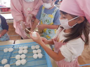 ・五平餅を、手作りして食べる家庭も減ってきている中、保育園で体験できるのは非常にありがたく食育にもつながっている。