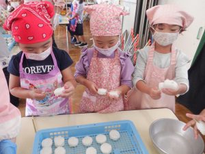 ・ご飯を木の型に入れて丸くするのが難しいけど、楽しかった。