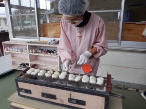 慣れないと加減がわからず、女性部の皆さんに確認してもらっています。