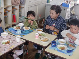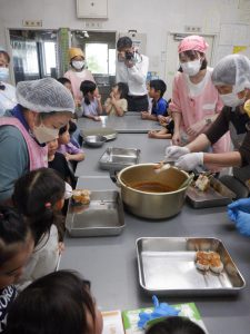 女性部の方々といっしょにいただきました。おいしくておかわりをしたお友だちもいましたよ。