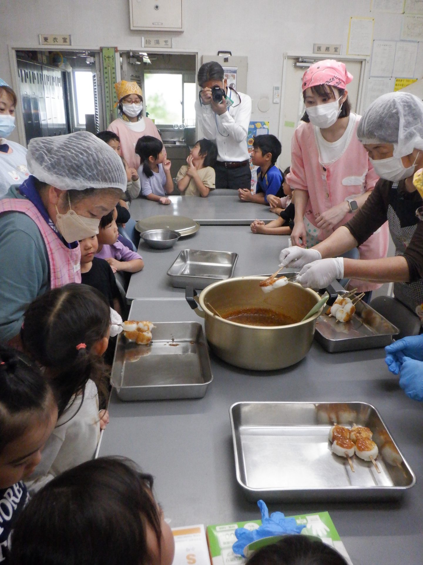 今年も「子どもたちに昔ながらの伝統行事である五平餅作りを体験させてあげたい!」とJAの龍江事業所長さん、女性部の6名の皆さん、課の栄養士さんが来てくださり、五平餅作りを行いました。