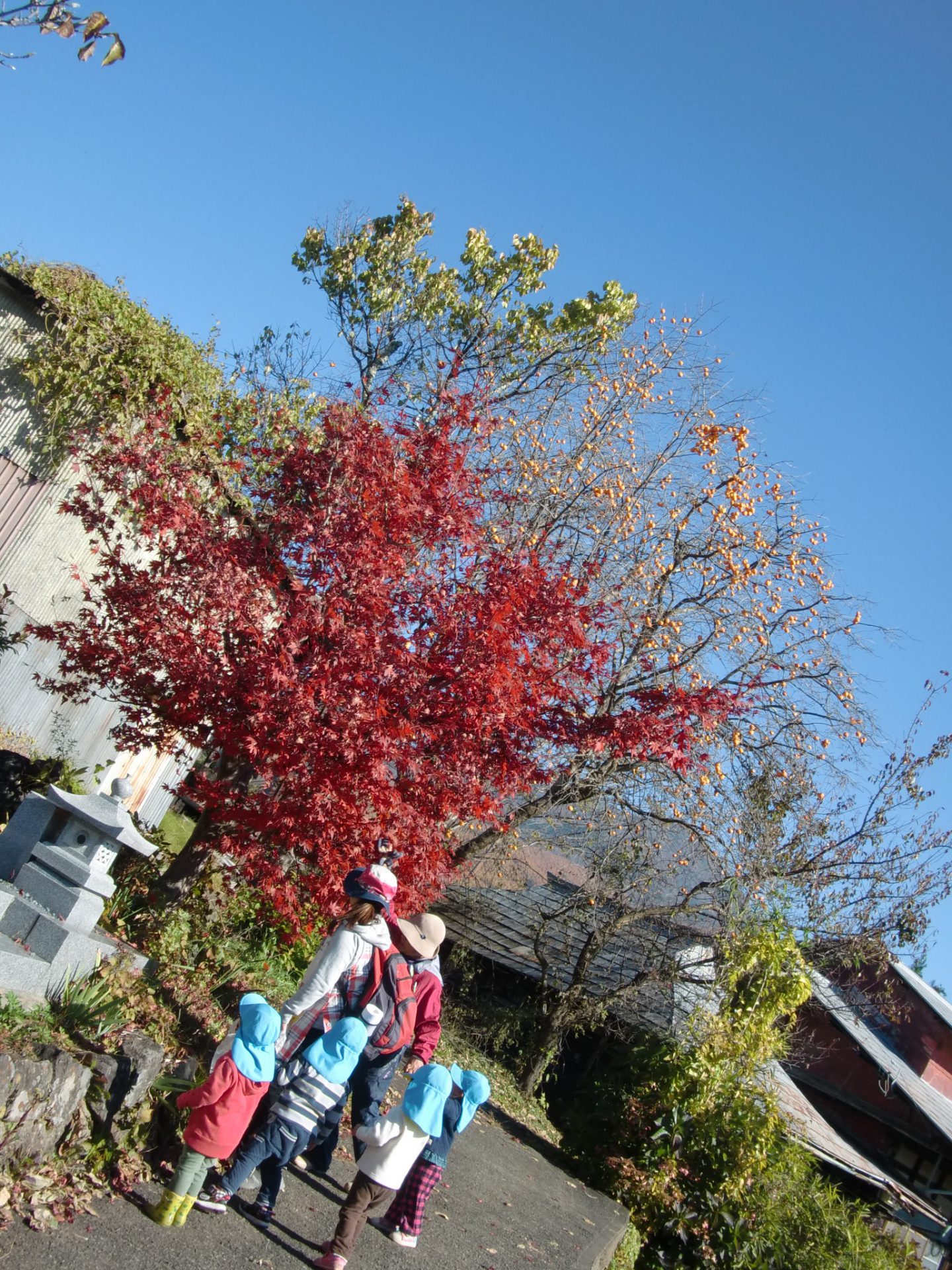「柿、食べたいね。おいしそう」と子ども達も顔を上げて、高い木を見つめます。