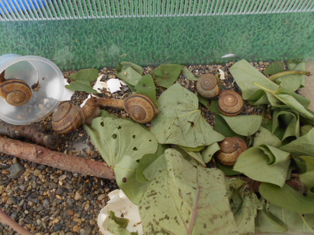 6匹捕まえました!子どもたちが、さつまいもの葉を沢山入れてくれました。