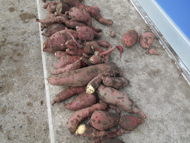 つる取りをしていたら小さなさつまいもがくっついており・・・