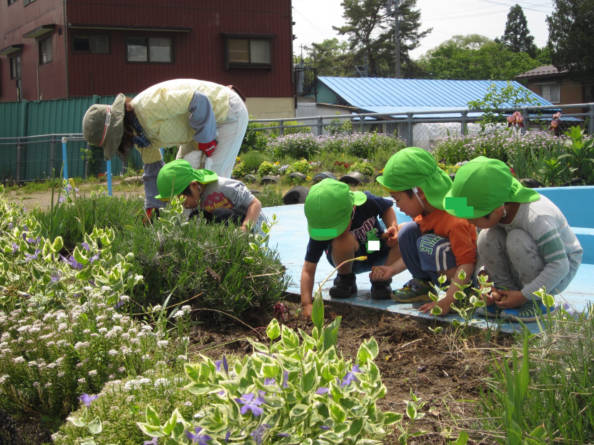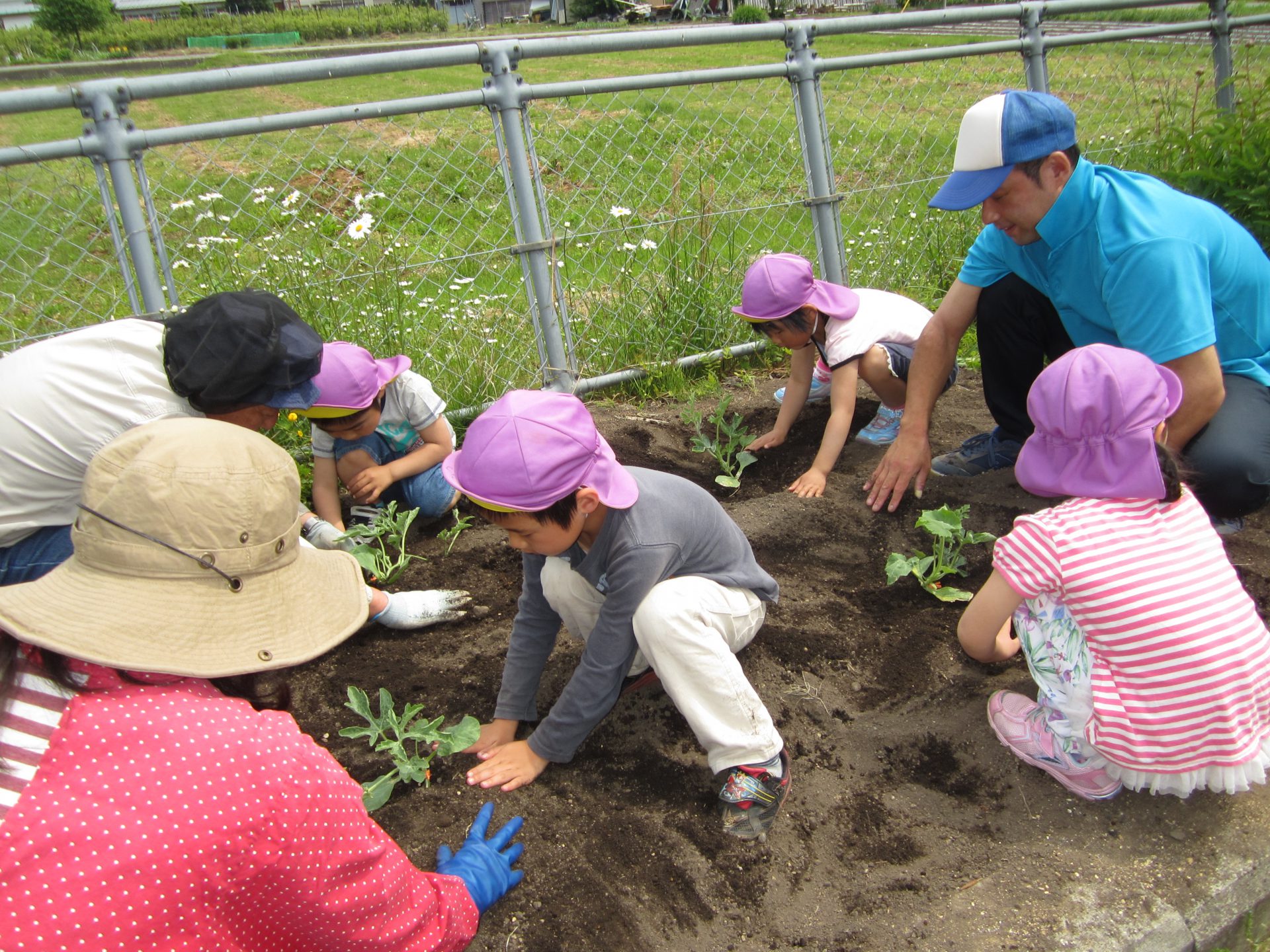地域の方に教わりながら、一緒に植えたお花や野菜。自分たちで育てることで、食べ物への関心がより一層深まっていったらいいなと思います。スーパーで見たことがある食べ物も、苗や葉・花に触れることはなかなか機会がありません。実体験の積み重ねから、食べ物博士になれたら素敵ですね。