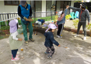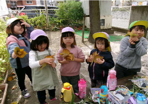 見つけた葉っぱに名前を書いて・・・誰の葉っぱが最後まで残るかな?最後まで残ったお友達、おめでとう♪