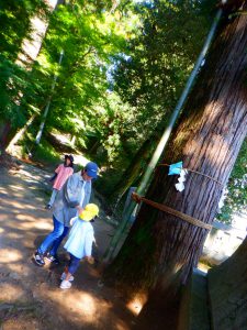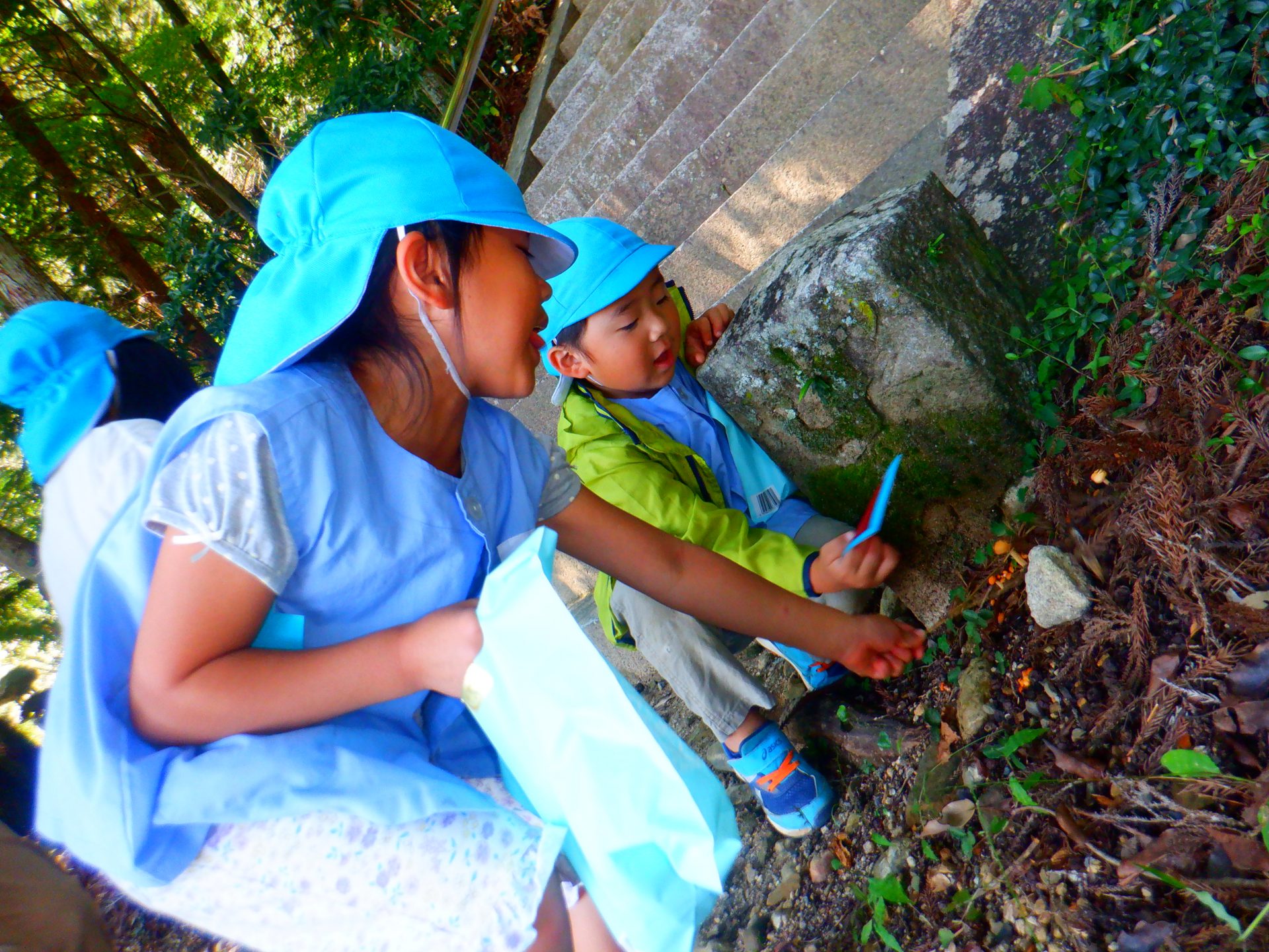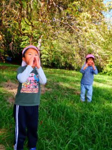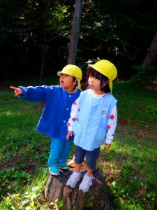 森の中は気持ちいいね(お母さんたちは休憩中、子どもたちだけでお散歩しました)