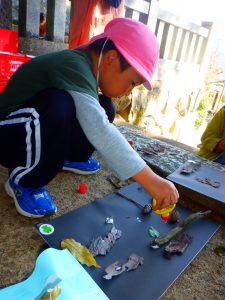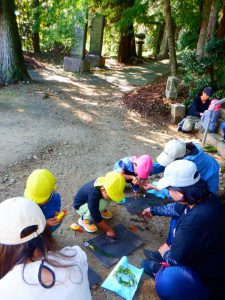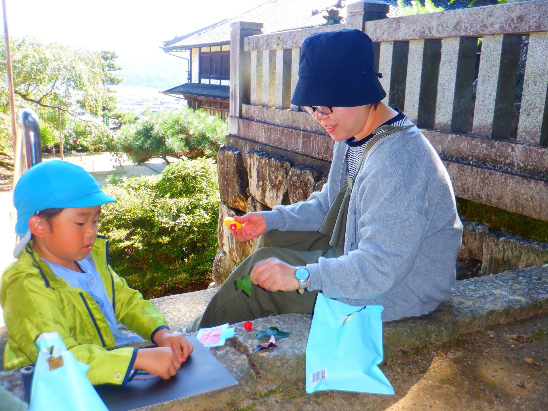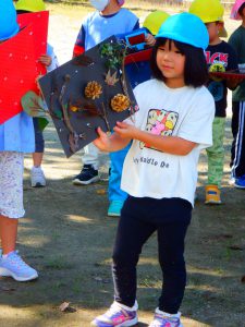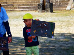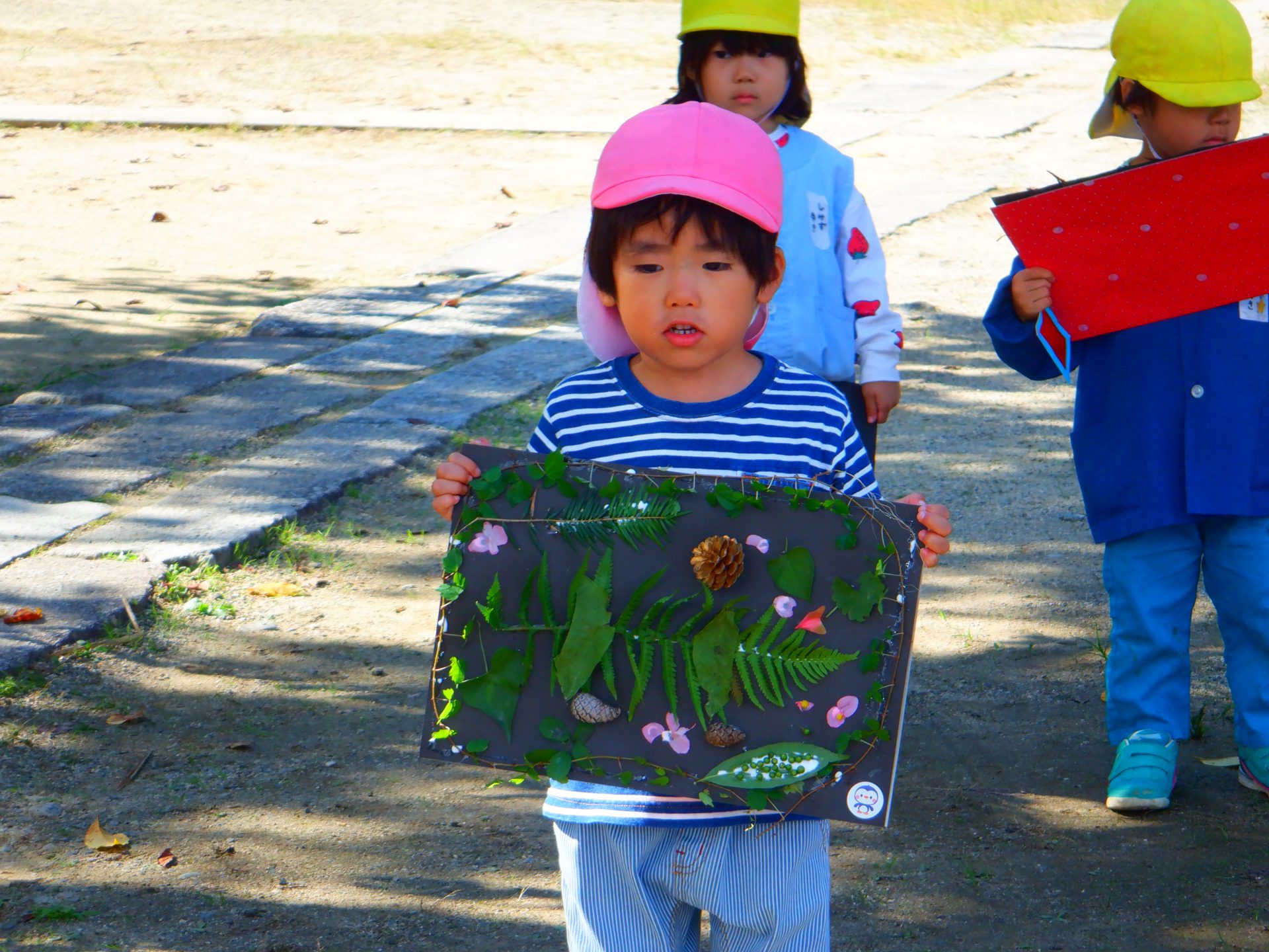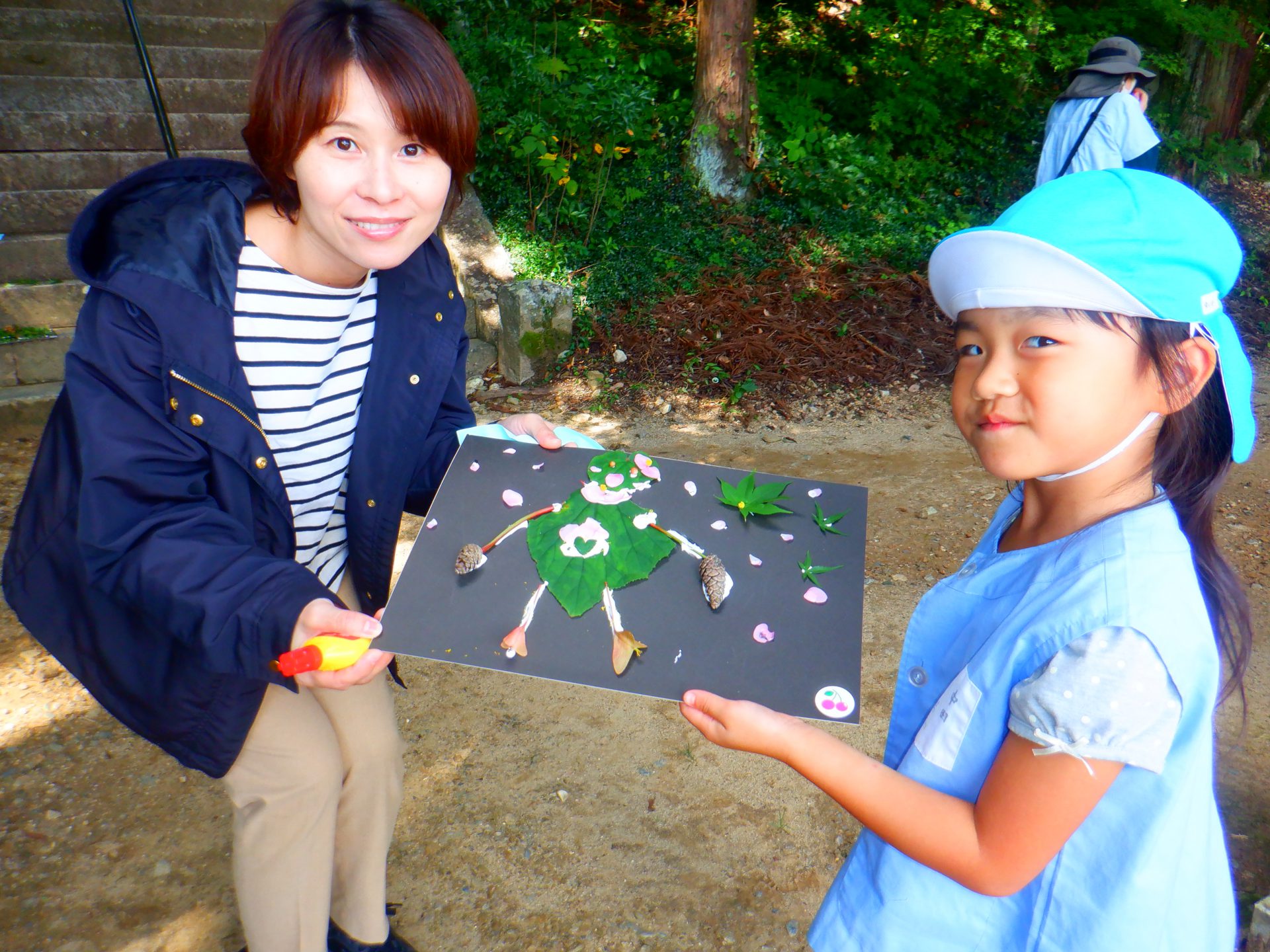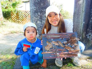 後半の自然物探しや、アート作りは保護者の皆さんも夢中になって取り組んでくださり、個性的な作品ができた。