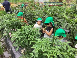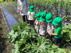 きゅうり・トマト・ナス・ピーマンなど収穫するたびに給食室へ届けて全園児でおいしく食べました。