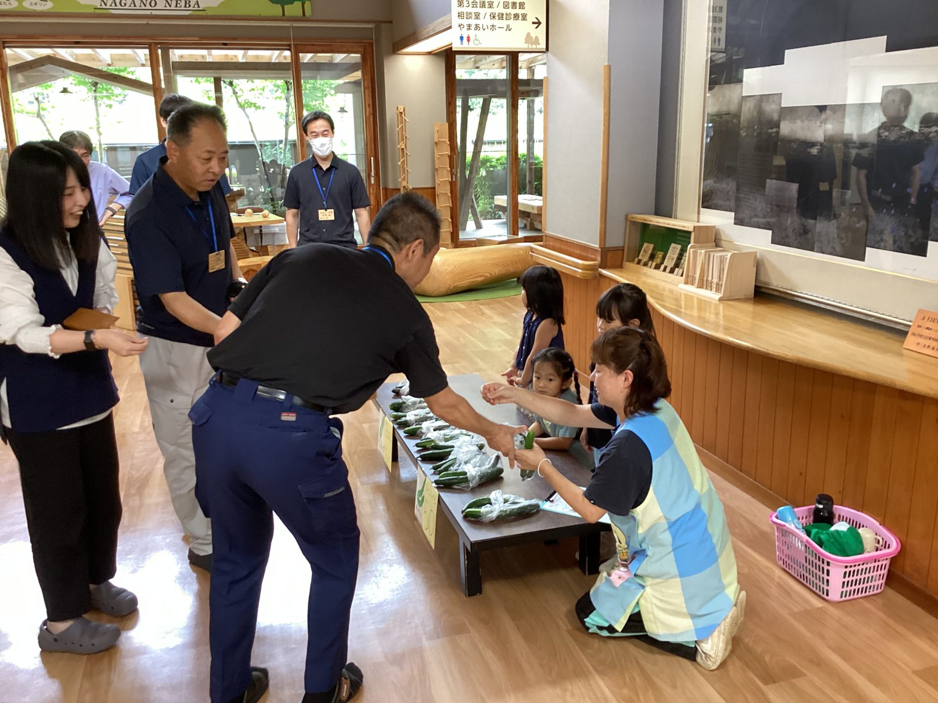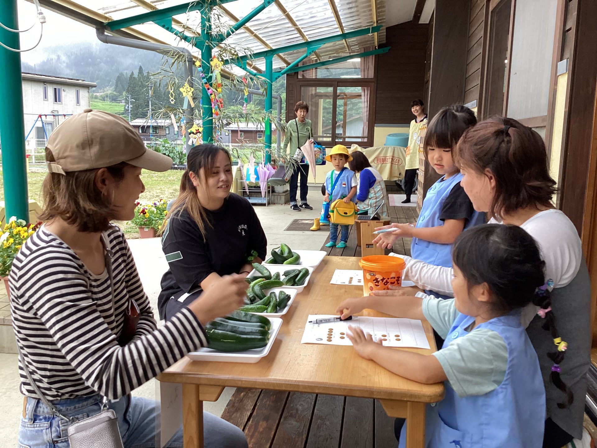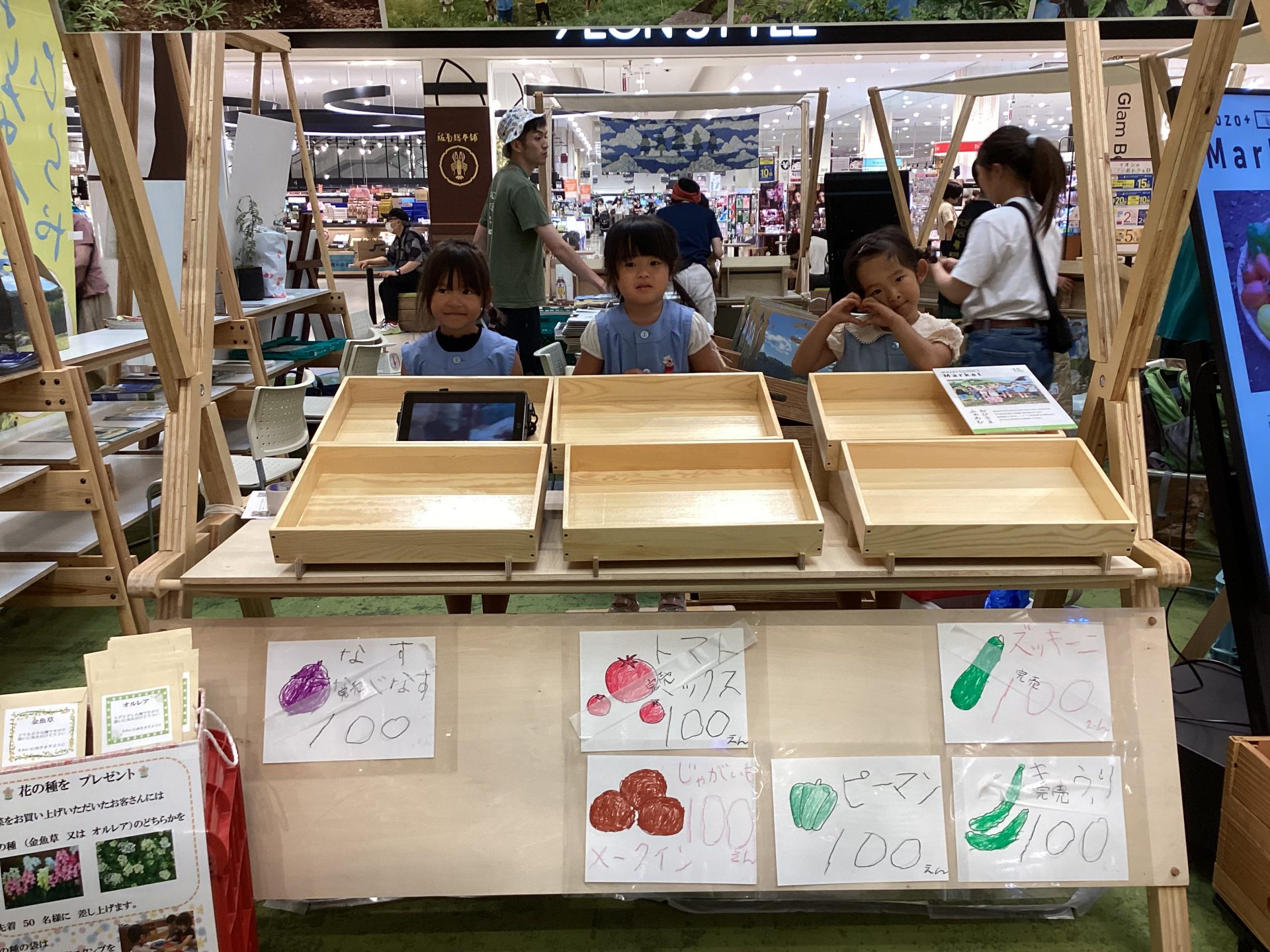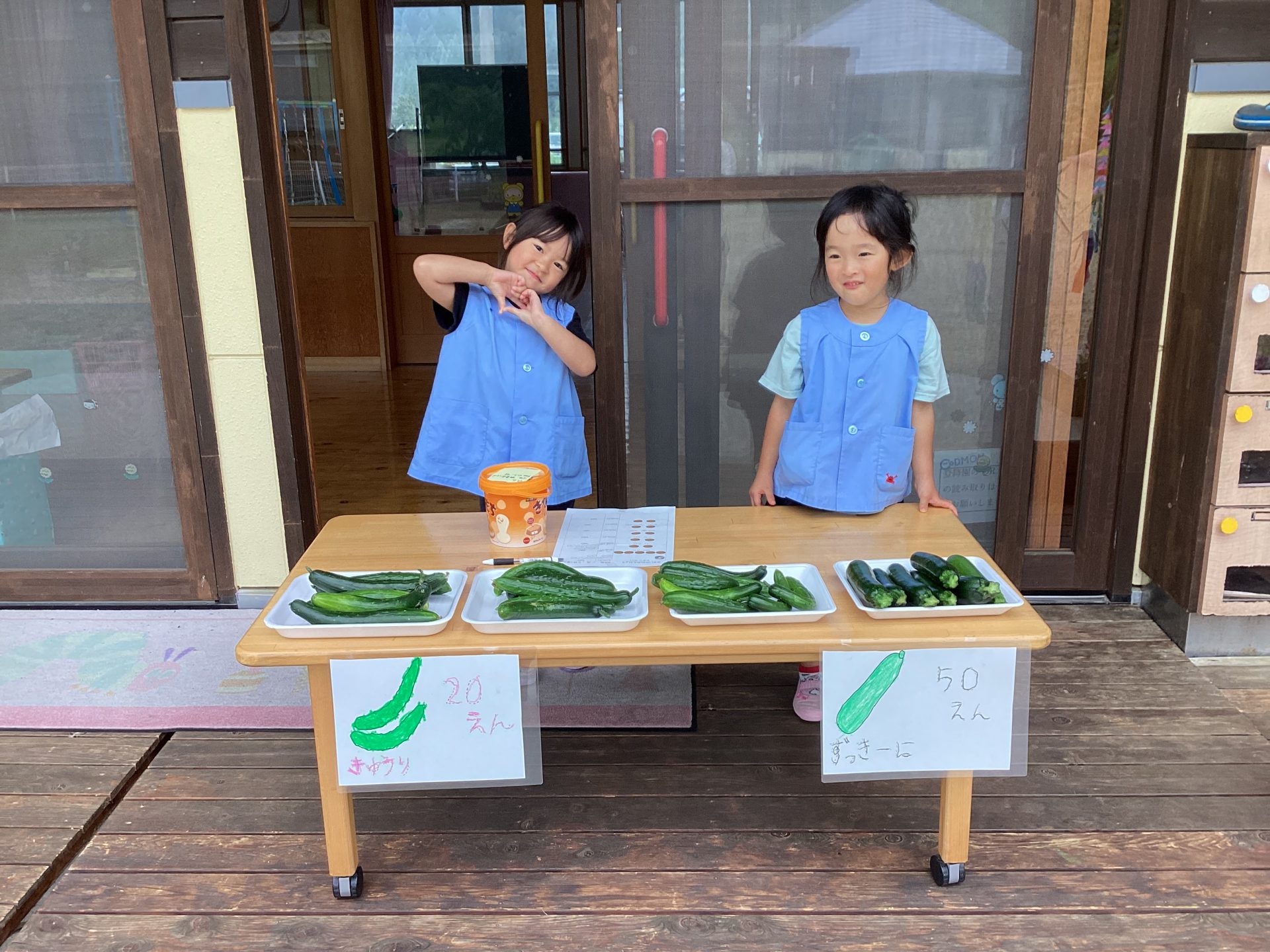 子ども「いらっしゃいませ~」「おいしい野菜ですよ~」「保育園で作った野菜です!!」