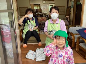 保育所での販売だけでは売れ残りが出始めてきたので、役場、社会福祉協議会、宅老所、森林組合、工務所、地元企業、学校にも協力してもらい出張販売に行ってきました。どの場所でも喜んでもらえ、完売です!!