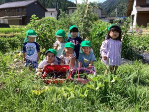 収穫が出来るたびに給食室や、以上児クラスの家庭へ持って行く毎日。
