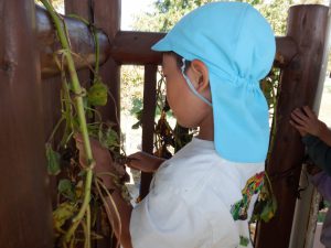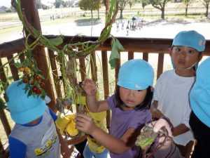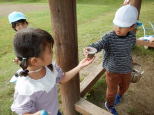 「金木犀の良いにおいがするねー!」など、五感を使って季節の移り変わりを感じてきた子どもたち。