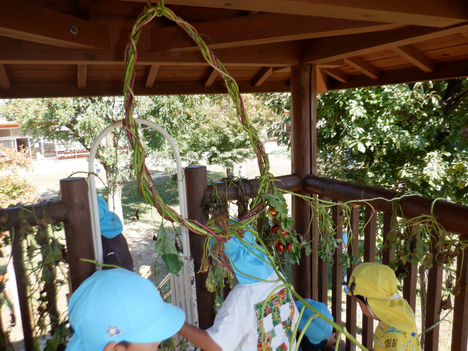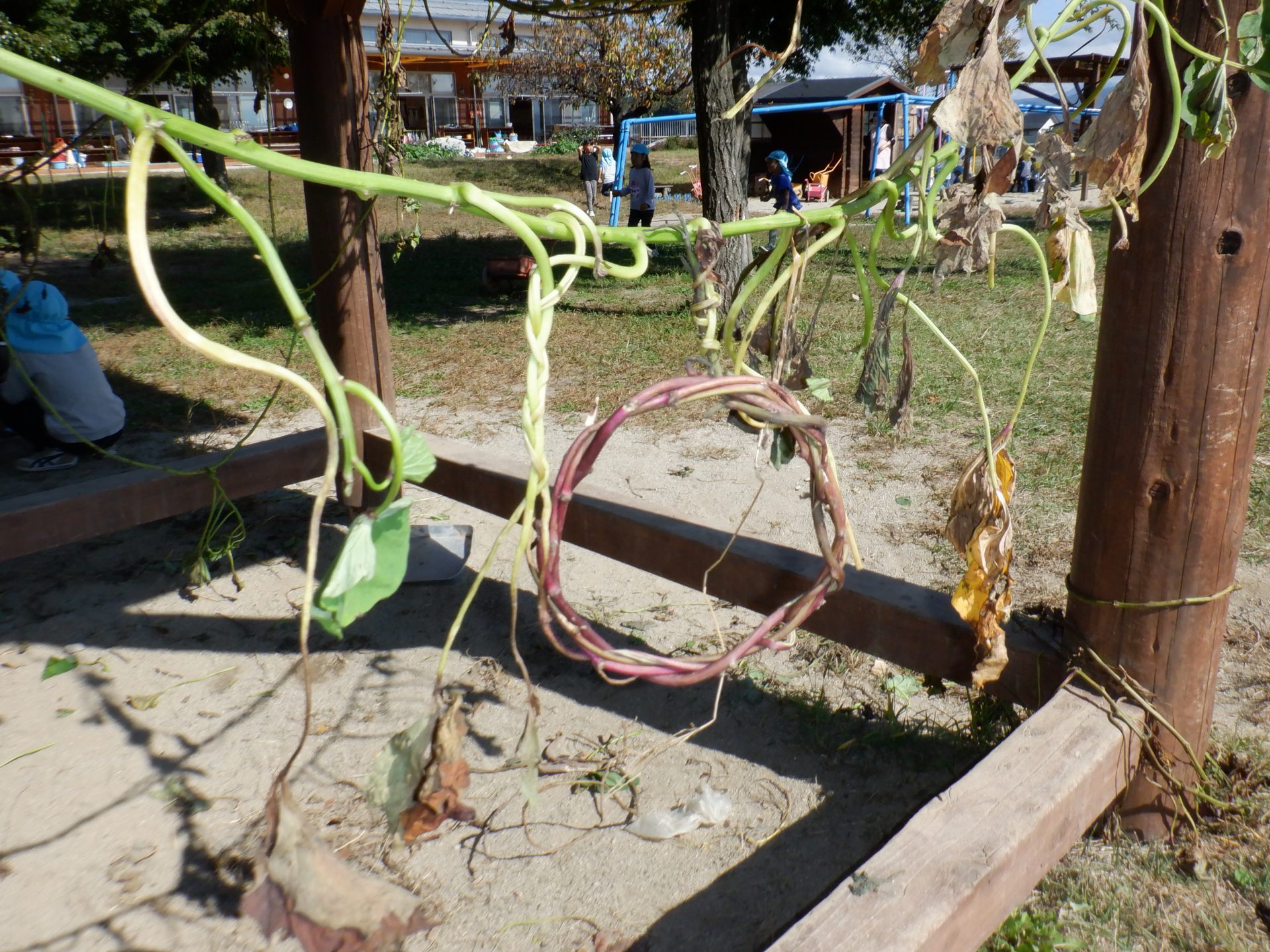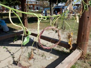 さつまいも掘りが終わってから、いものつるは子どもたちの遊びの中で大活躍しています。