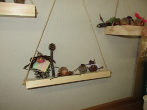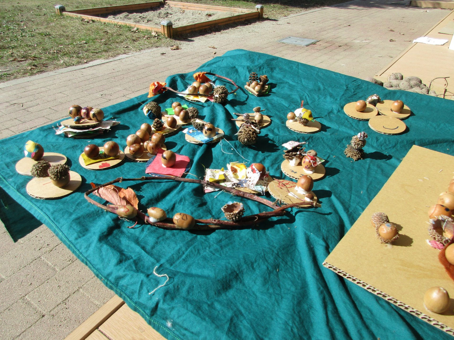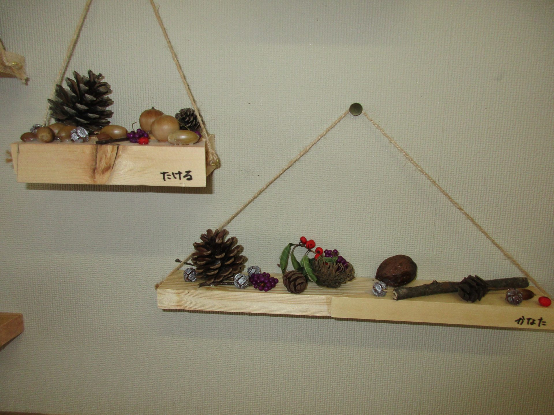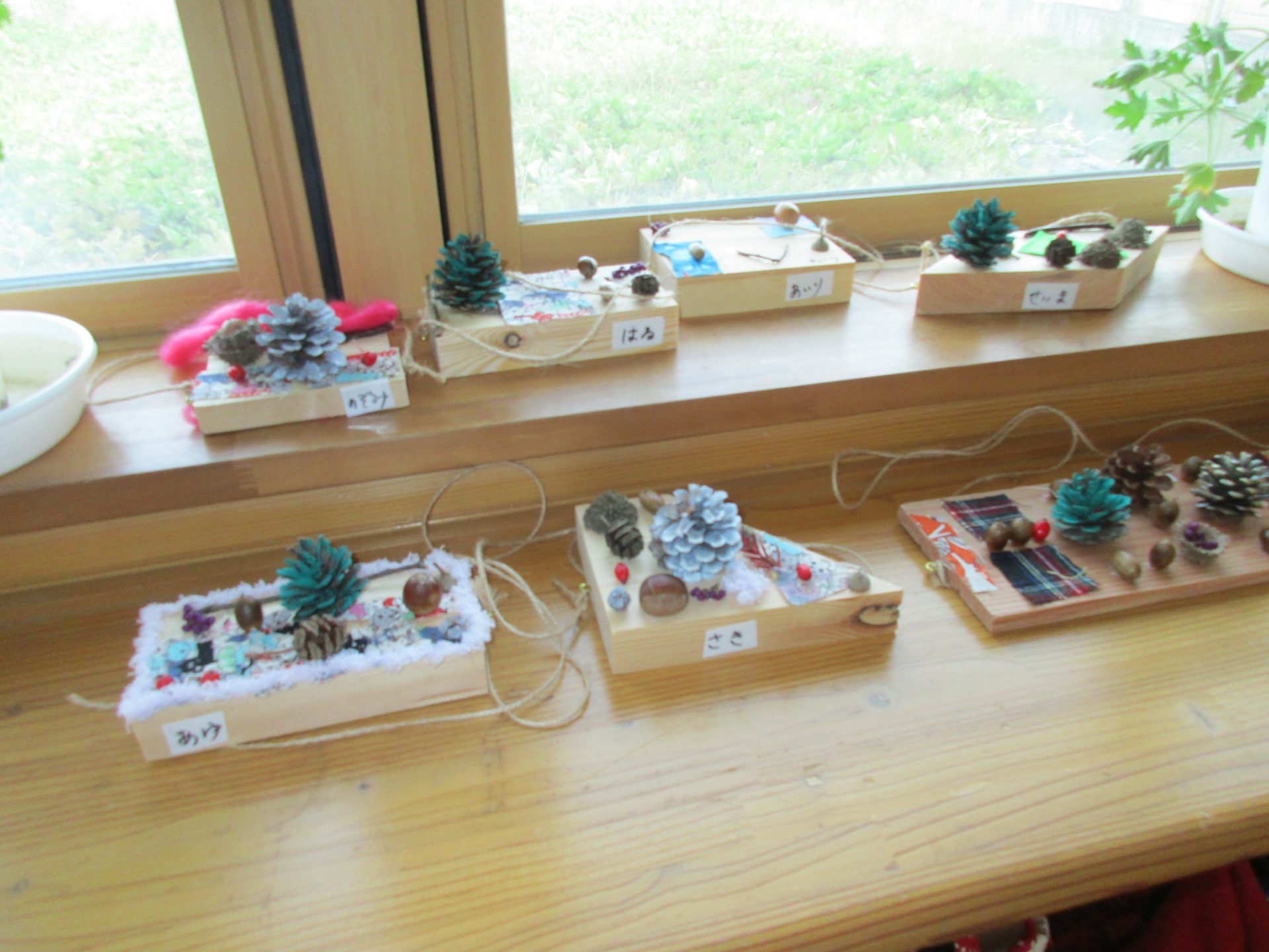 もらった板や段ボールに木の実をのせたらステキになったね