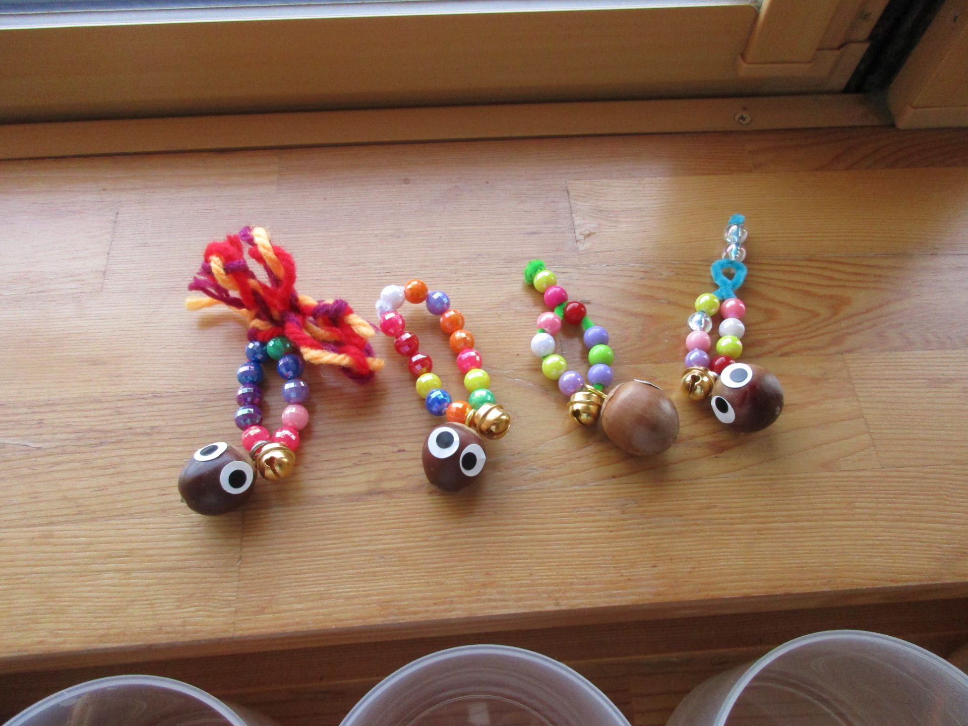 ひもとドングリで「やじろべえ」もできたよ