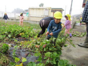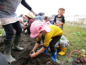 はじめは土をさわるのがちょっと嫌だった子も大きなおいもの姿を見ると、夢中になってモグラの手で掘りました。