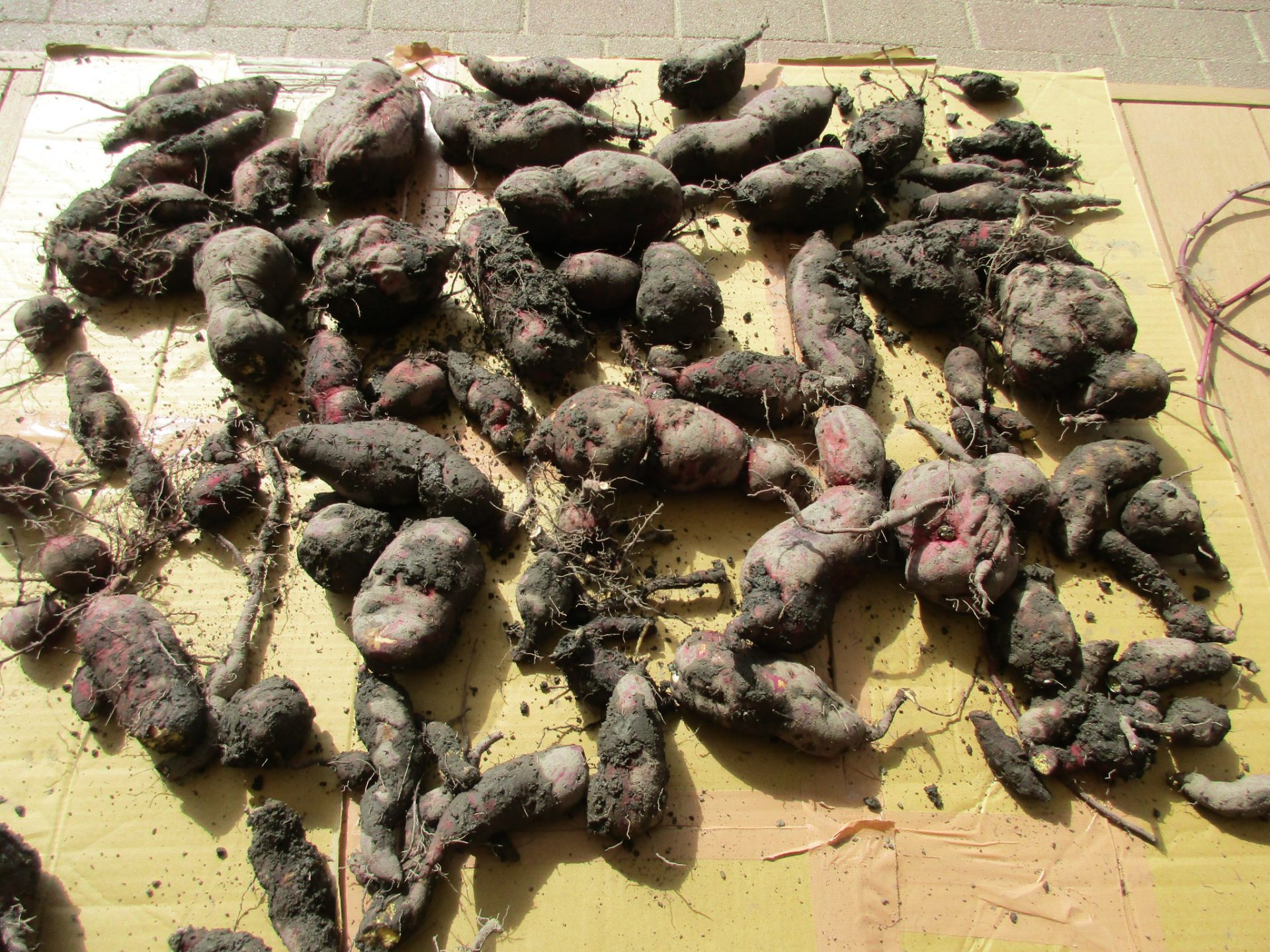 春植えた小さかった苗がこんなに大きくなって、沢山の葉っぱの下からはおいもがたくさん。
