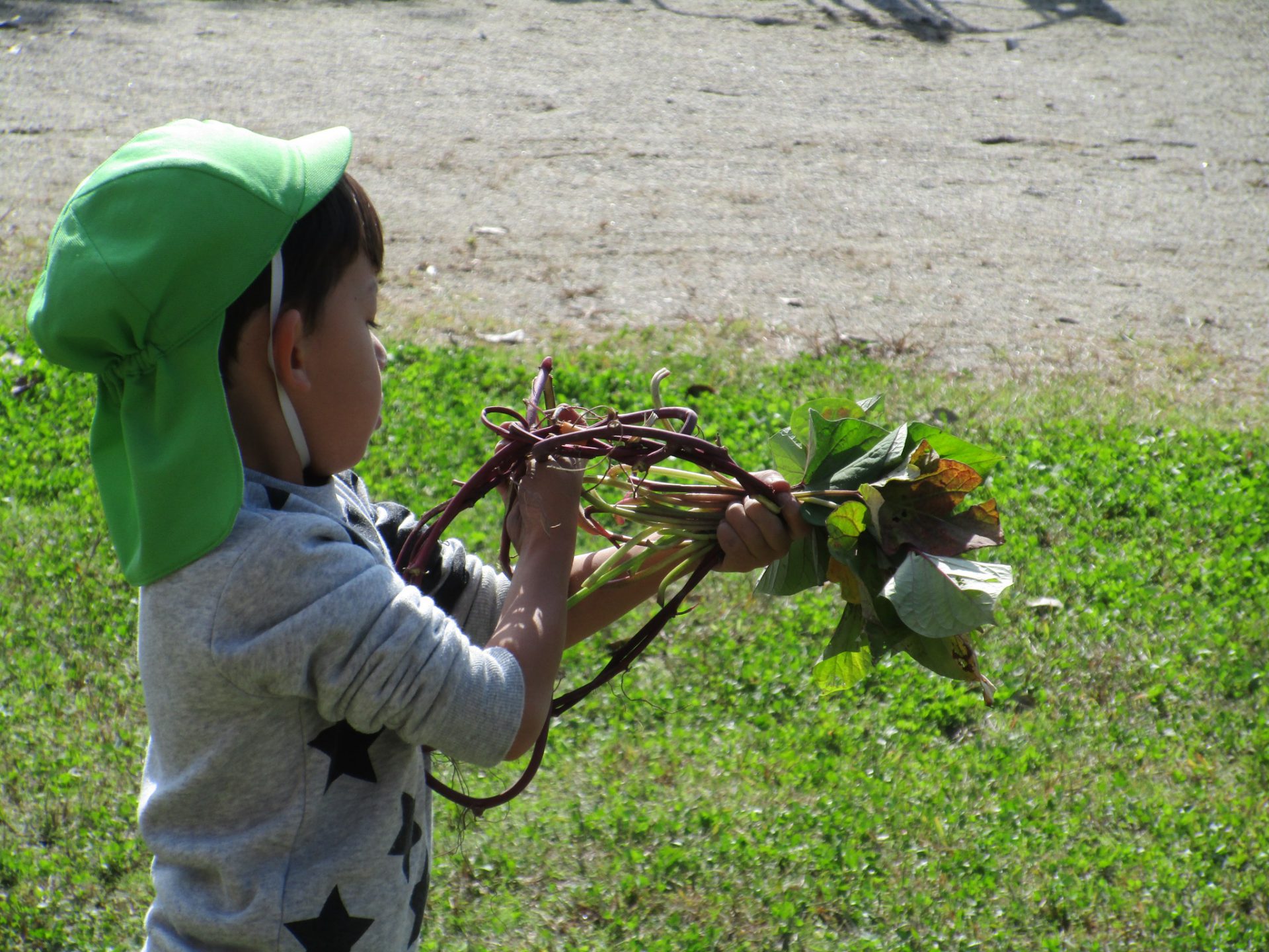 さつまいもの収穫の活動が、茎を使っての遊びや食への感心など色々な事につながり、子ども達のしたい・やりたい意欲が見られました。