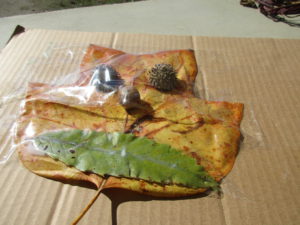 おおきな葉っぱとどんぐりでこんな顔ができたよ