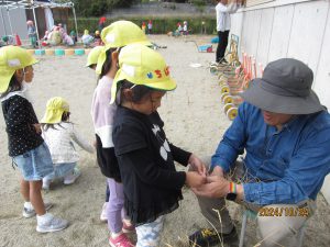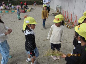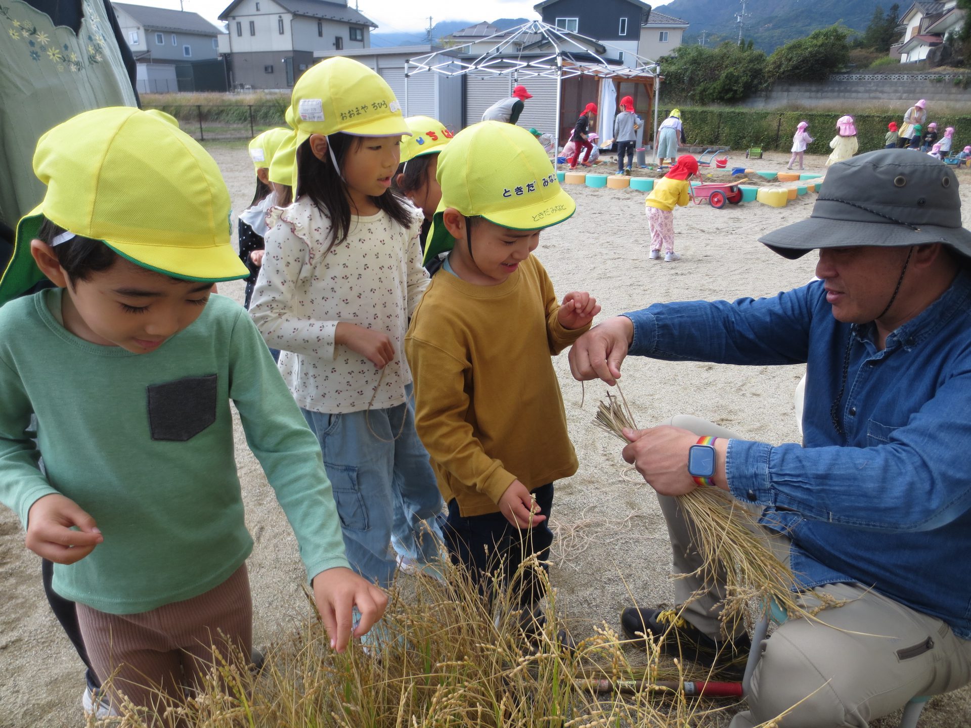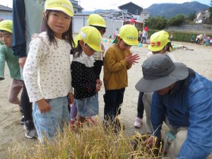 園長先生が稲を刈り始めると・・・
