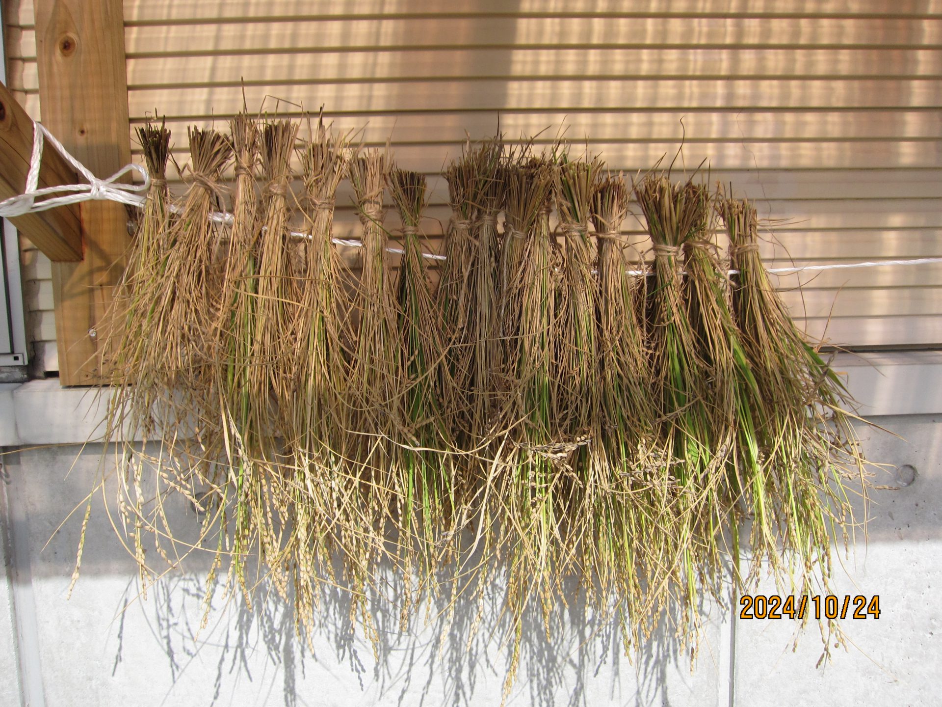 「束ねたら、あそこに干すんだよ。」と、友達に教えてくれています。